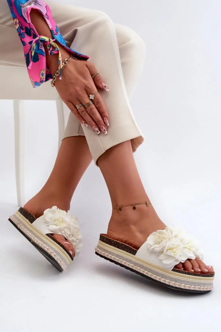 Damskie klapki na masywnej platformie to idealny wybór dla kobiet ceniących sobie modny wygląd i wygodę. Ten stylowy model przyciąga wzrok nie tylko swoją masywną platformą, ale również uroczymi kwiatkami, które zdobią przód obuwia. Idealne na letnie dni, te klapki są doskonałym dodatkiem do sukienek, spódnic, a także jeansów i szortów. Przy wyborze rozmiaru prosimy sugerować się tabelą rozmiarów.