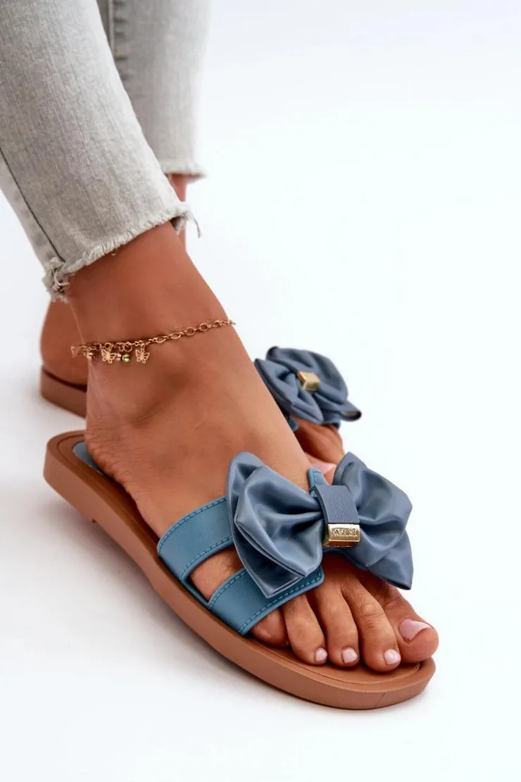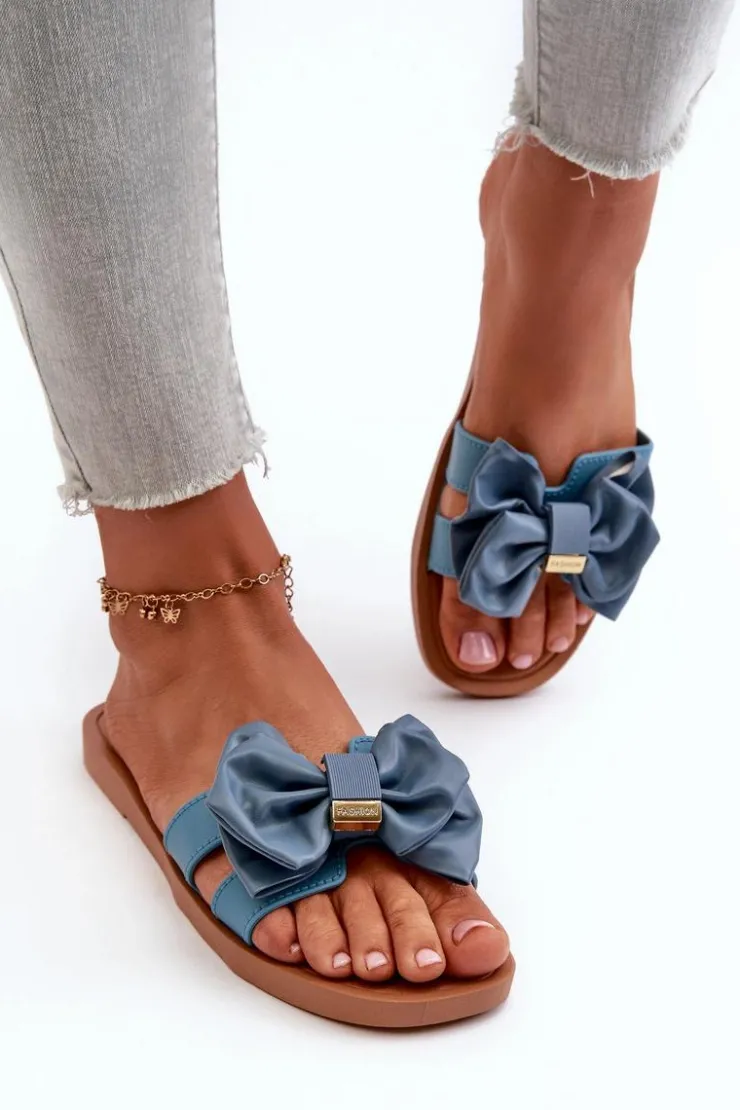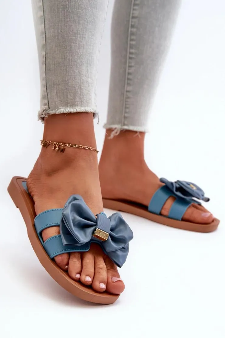Klapki damskie wykonane z gumowego tworzywa. Eko Skórzana kokarda nadaje im dziewczęcy i urokliwy wygląd. Klapki są wygodne w użytkowaniu, a także elastyczne. Idealne na letnie spacery, wypad na plażę czy spotkania ze znajomymi. Przy wyborze rozmiaru prosimy sugerować się tabelą rozmiarów.