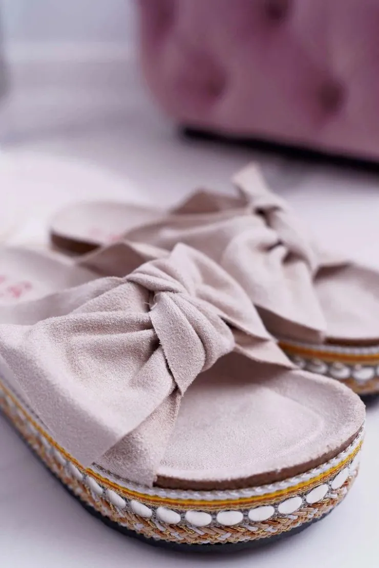 Hot Boto Klapki Damskie Z Kokardami Gruba Podeszwa Beżowe Milady