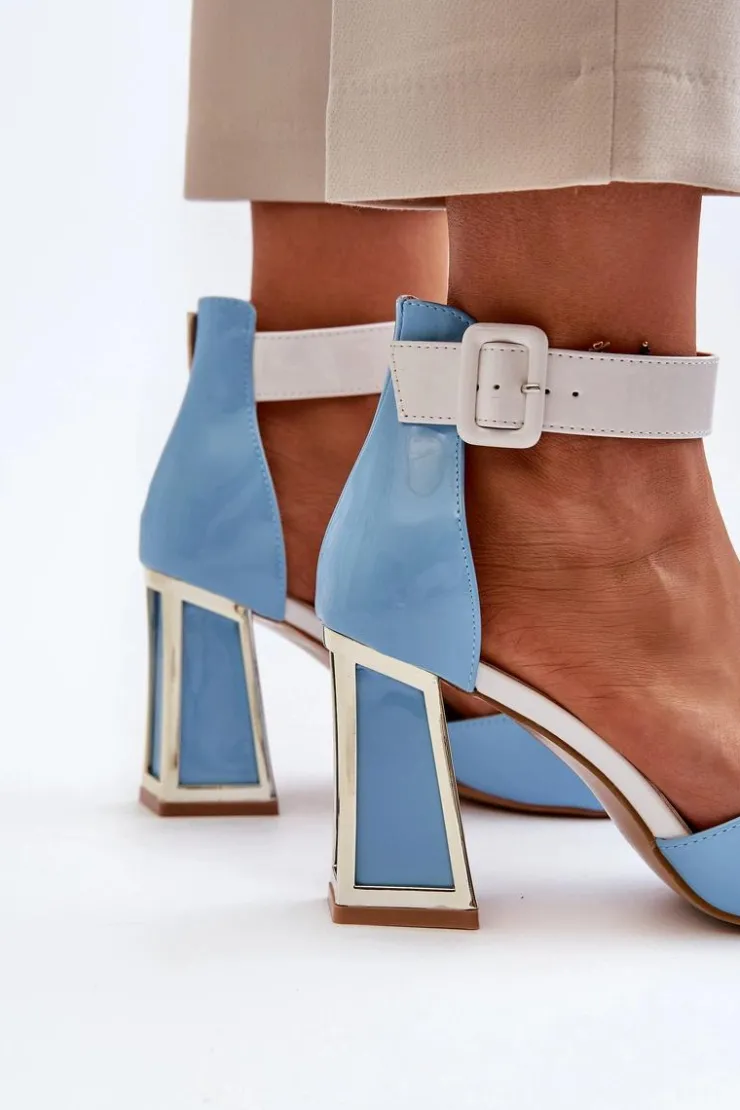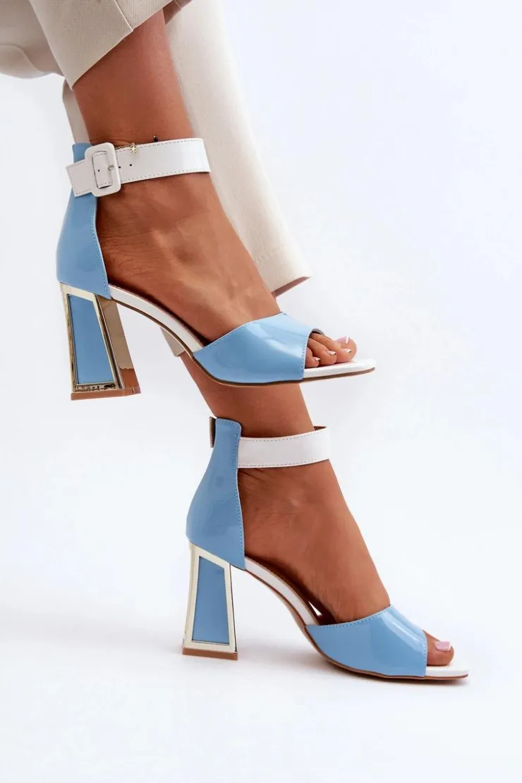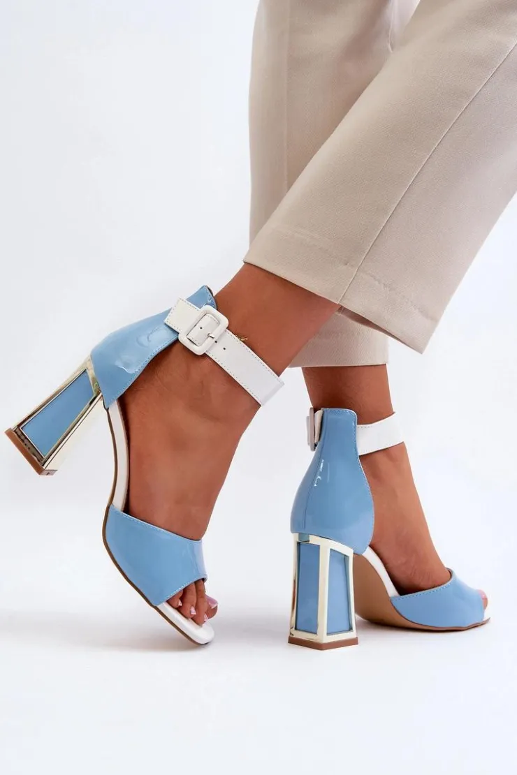 Eleganckie sandały damskie wykonane z eko skóry. Obcas w postaci słupka z lustrzanym elementem dodaje im elegancji i subtelności. Zapinane na regulowany pasek ze sprzączką, co gwarantują idealne dopasowanie do stopy. Uniwersalny fason sprawia, że świetnie pasują do różnorodnych stylizacji, od casualowych po bardziej formalne, dodając im wyrafinowanego akcentu. Przy wyborze rozmiaru prosimy sugerować się tabelą rozmiarów.