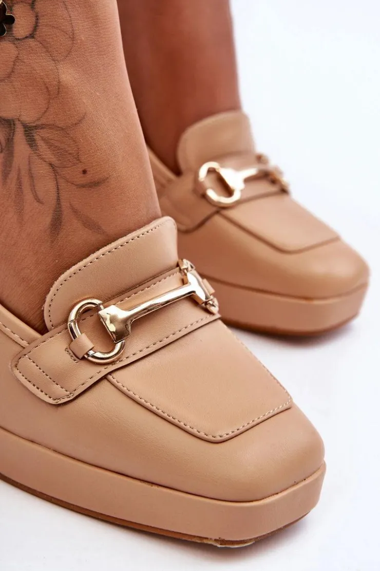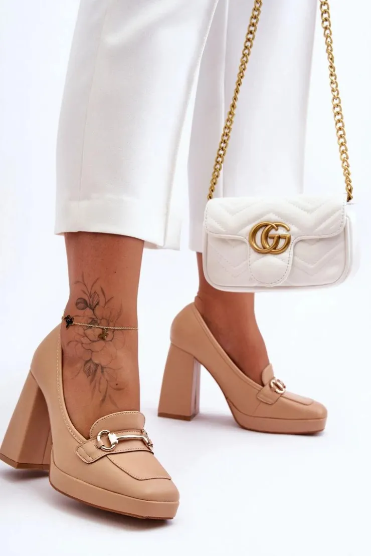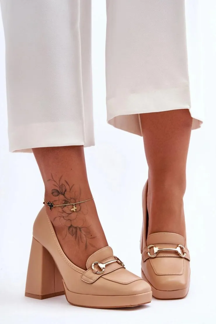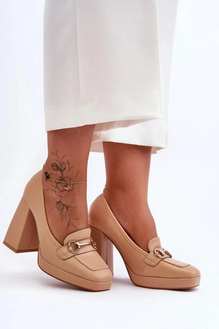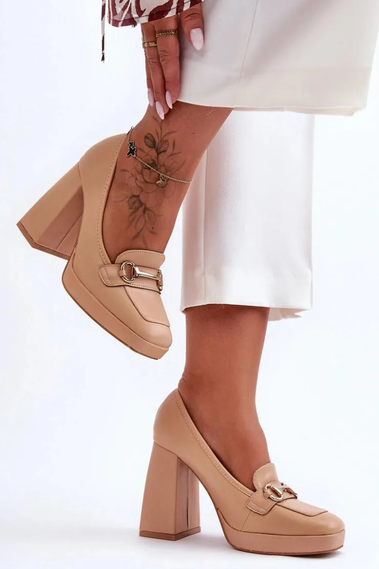 Hot Boto Modne Skórzane Czółenka Nude Rouse Beżowy