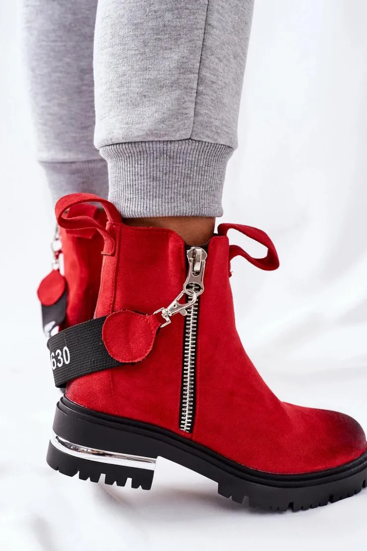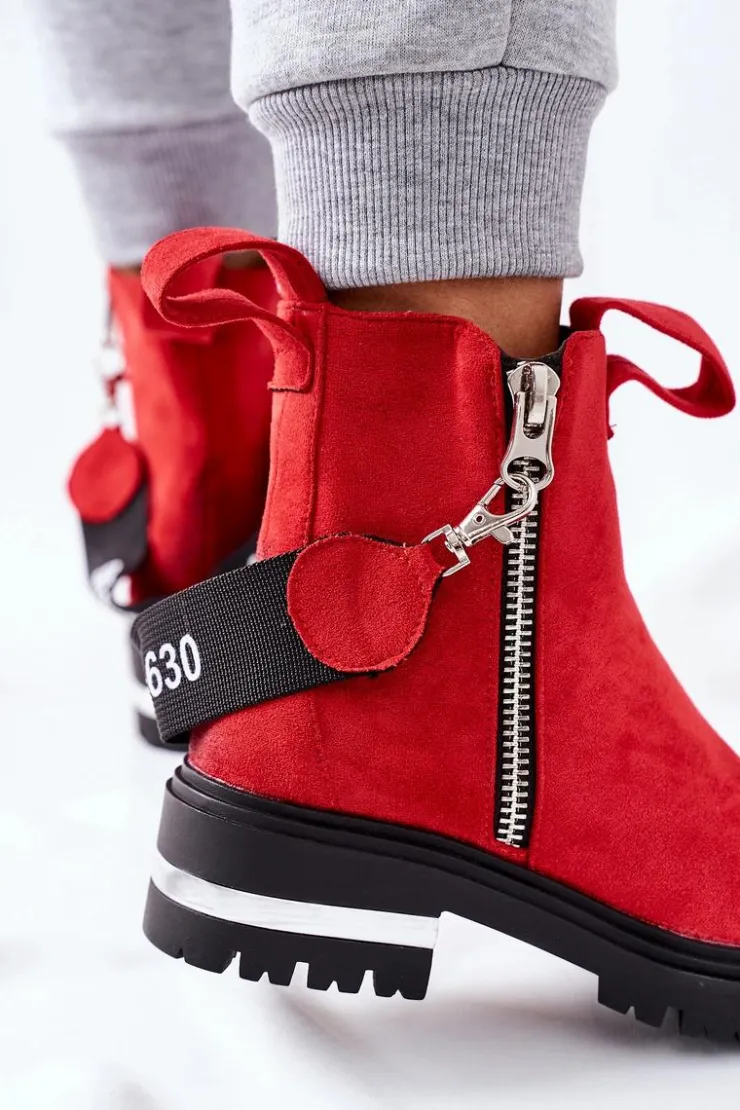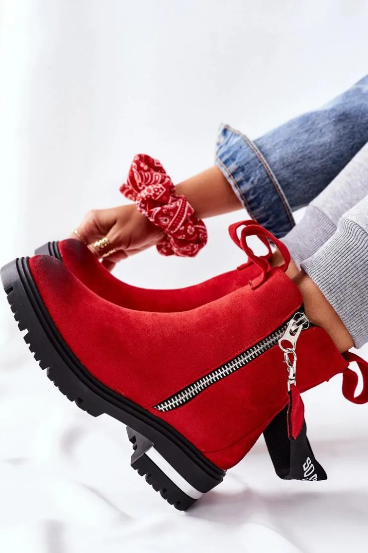 Botki damskie wykonane z eko zamszu. Wnętrze ocieplone jest miłym w dotyku kocem obuwniczym. Przy wyborze rozmiaru prosimy sugerować się tabelą rozmiarów.