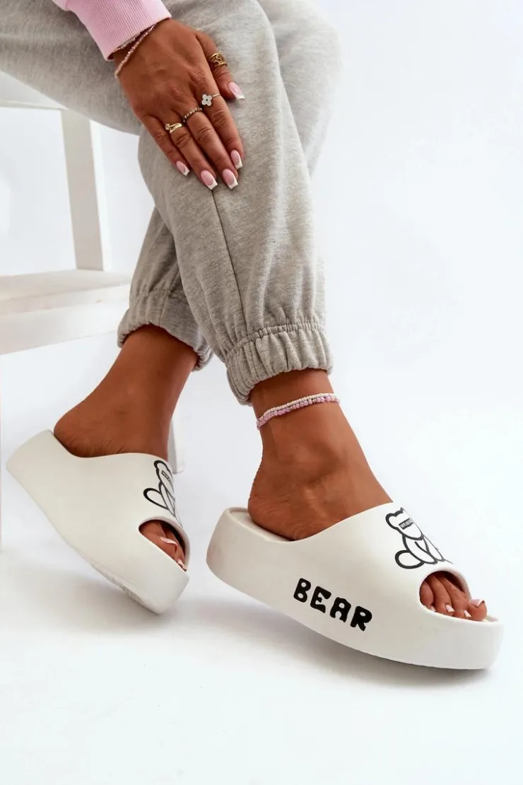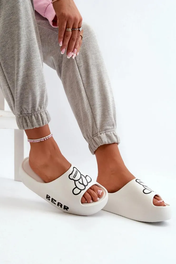 Lekkie damskie klapki na basen wykonane z piankowego tworzywa. Osadzone na masywnej podeszwie. Te urocze klapki zdobi nadruk z motywem misia, który dodaje im wyjątkowego charakteru. Idealne do codziennego użytku na, łączą wygodę i styl w jednym. Przy wyborze rozmiaru prosimy sugerować się tabelą rozmiarów.