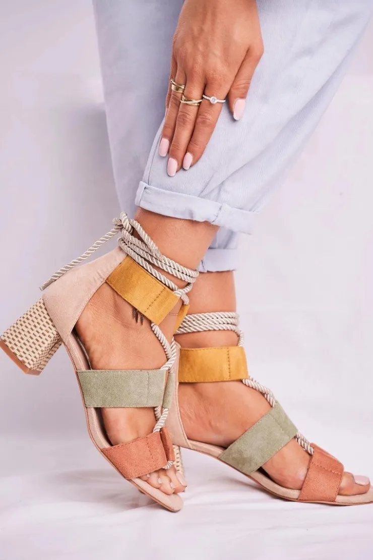 Hot Boto Sandałki Damskie Na Słupku Zamszowe Kolorowe Beckie