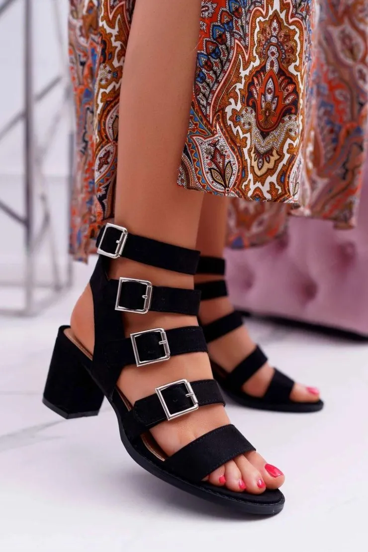 Hot Boto Sandały Damskie Na Słupku Gladiatorki Zamsz Czarne Nella