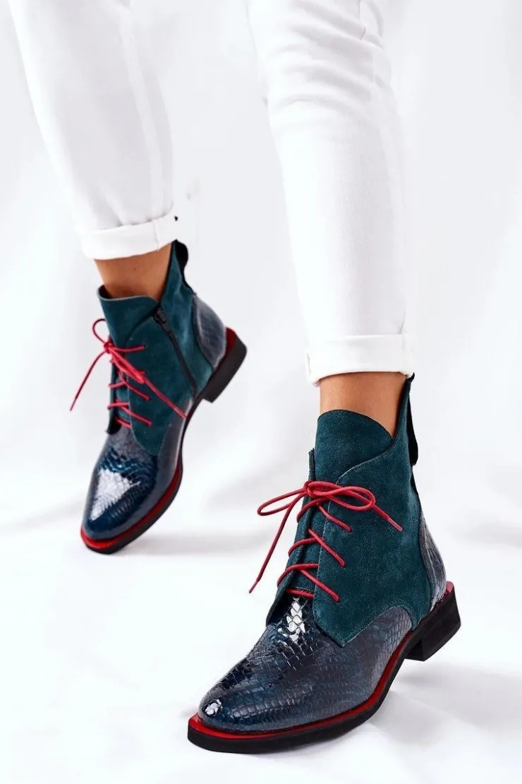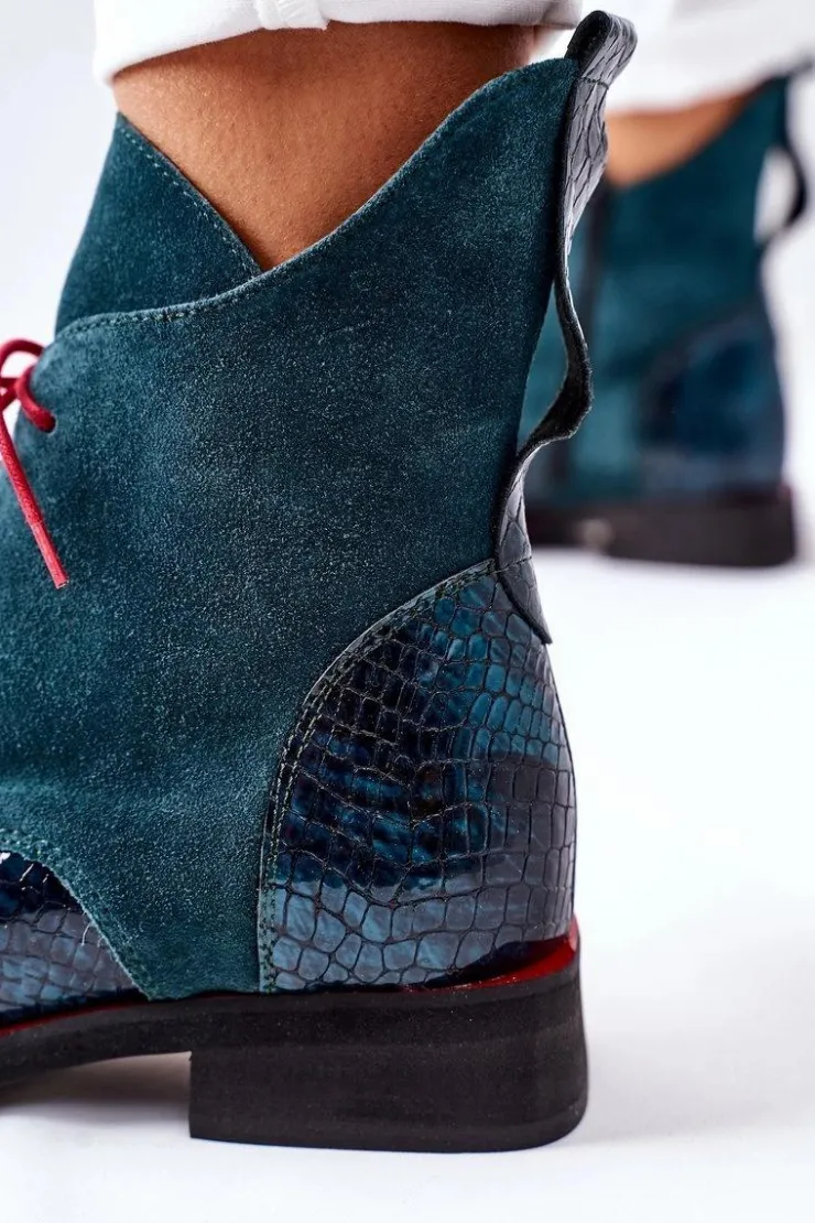 Hot Boto Skórzane Botki Z Krokodylim Wzorem Zielone Cheyenne