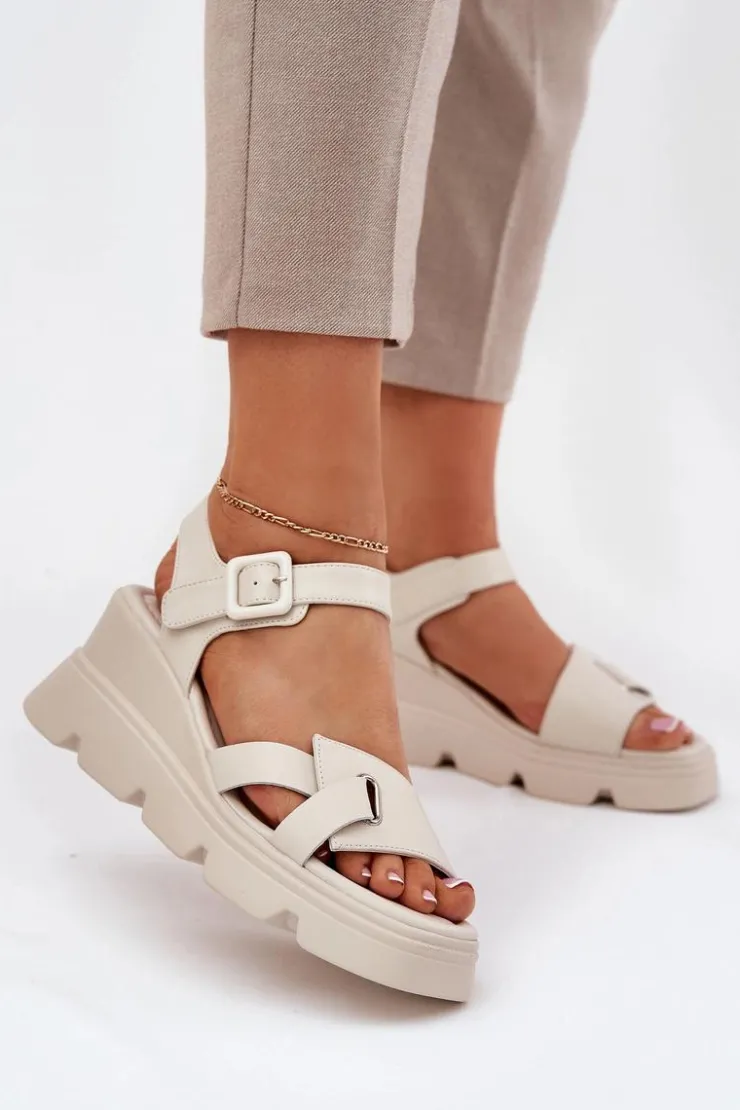Damskie sandały z naturalnej skóry to elegancka propozycja na ciepłe dni. Osadzone na koturnie, zapewniają komfort i stabilność przez cały dzień. Zapinane na klamrę z regulowanym paskiem, pozwalają na idealne dopasowanie do stopy. Miękka wkładka gwarantuje wygodę, a klasyczny fason sprawia, że te sandały będą doskonałym uzupełnieniem wielu letnich stylizacji. Idealne zarówno do codziennych, jak i bardziej eleganckich looków. Przy wyborze rozmiaru prosimy sugerować się tabelą rozmiarów.