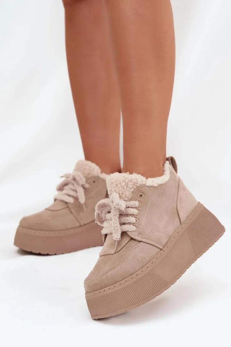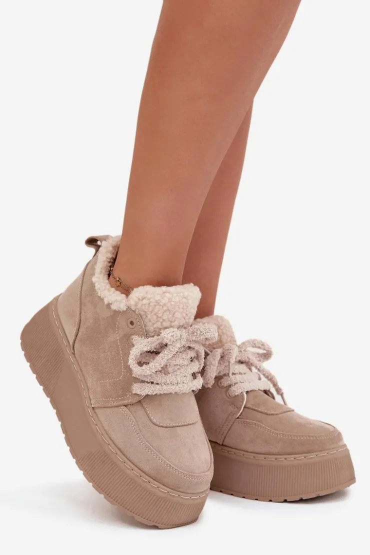 Zimowe dni nie muszą oznaczać rezygnacji ze stylu – te damskie śniegowce z eko zamszu łączą modny wygląd z funkcjonalnością. Masywna platforma chroni przed chłodem od podłoża, a futerko typu baranek gwarantuje ciepło i wygodę nawet w mroźne dni. Dzięki połączeniu zamka i sznurowania buty świetnie trzymają się na nodze i łatwo je zakładać. To idealny wybór na co dzień – komfortowe, praktyczne i pełne zimowego uroku. Przy wyborze rozmiaru prosimy sugerować się tabelą rozmiarów.
