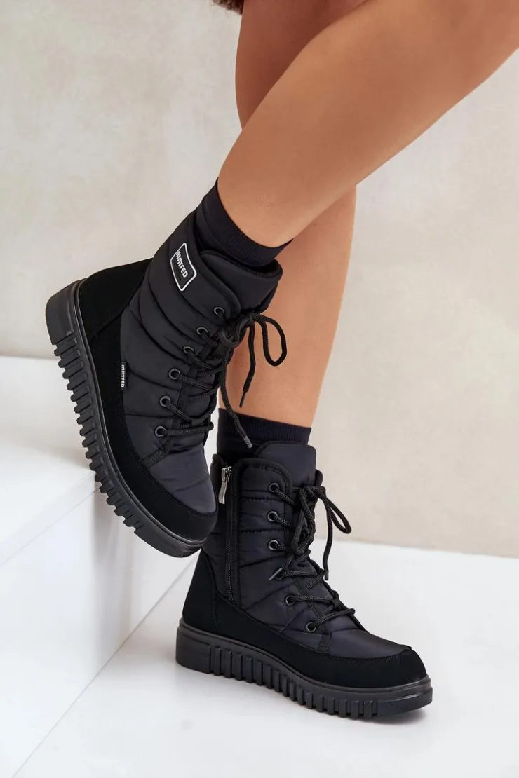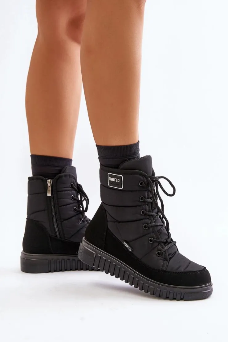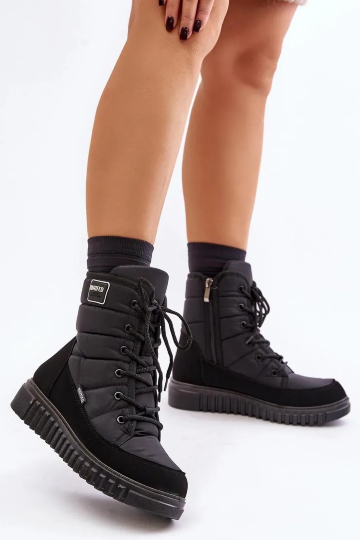 Damskie śniegowce, które charakteryzują się wygodą. Osadzone na platformie. Wnętrze ocieplane materiałem typu polar doskonale odizoluje od zimna, zapewniając ciepło nawet w najzimniejsze dni. Zapinane na zamek i sznurowane. Doskonałe do codziennego użytku w zimowych miesiącach! Przy wyborze rozmiaru, prosimy sugerować się tabelą rozmiarów.