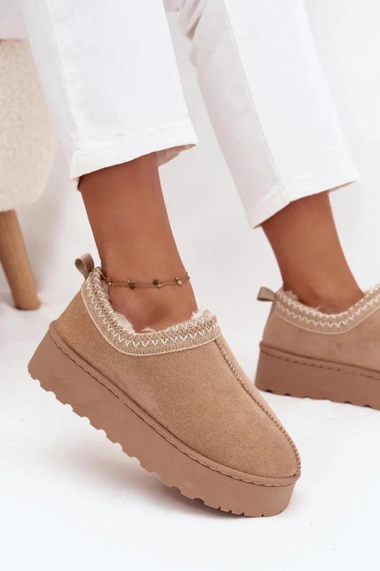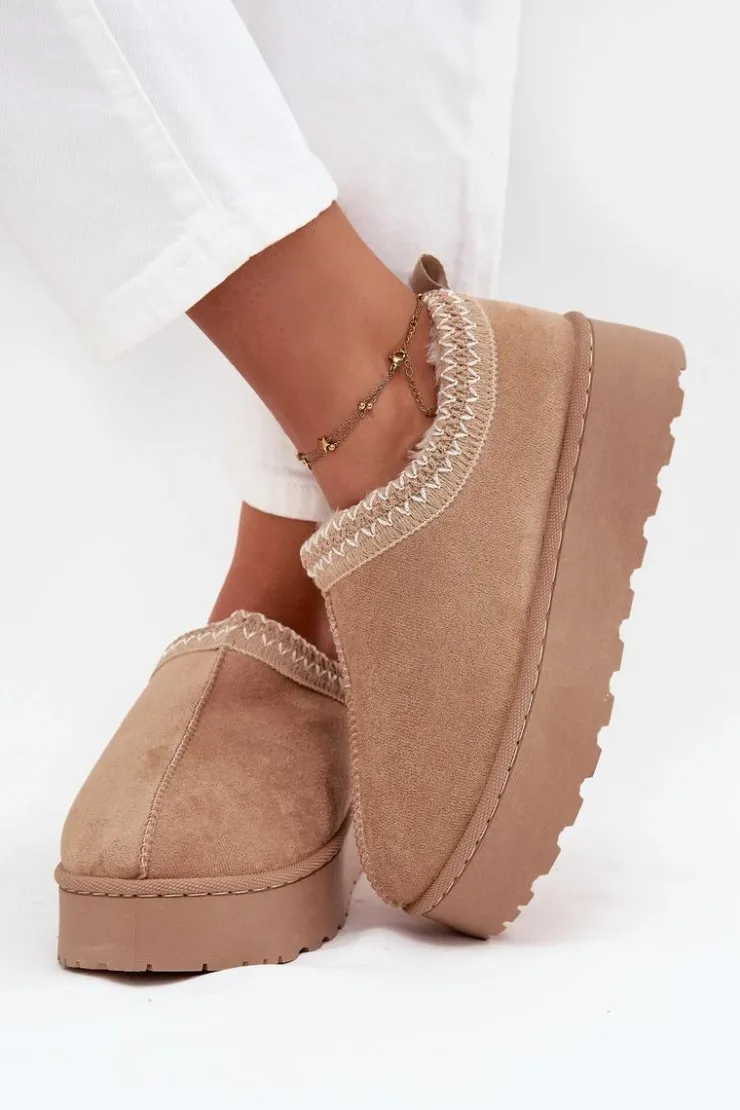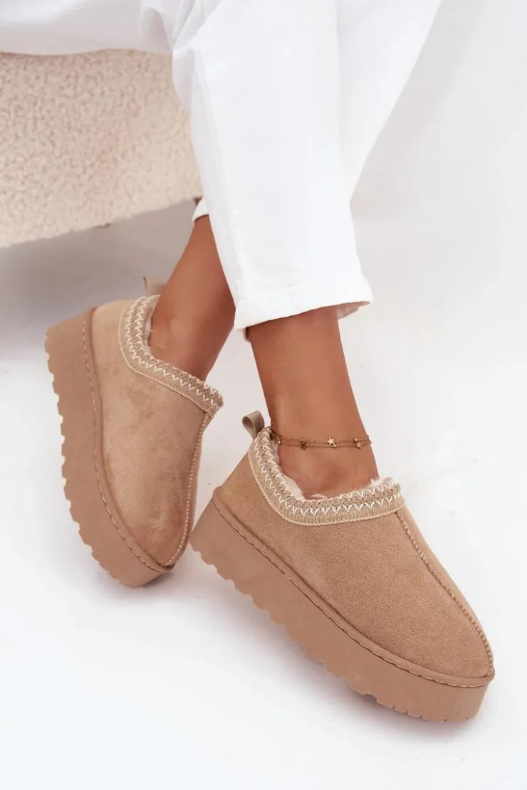Śniegowce damskie wykonane z eko zamszu to idealna propozycja na zimę. Model zdobi lamówka w formie haftu, która nadaje całości wyjątkowego charakteru. Osadzone na platformie z gumowego tworzywa skutecznie izolują od chłodu, a miękkie futerko wewnątrz zapewnia komfort i ciepło w mroźne dni. To obuwie, które łączy funkcjonalność z modnym wyglądem – doskonałe zarówno na codzienne spacery, jak i zimowe stylizacje. Przy wyborze rozmiaru prosimy kierować tabelą rozmiarów.