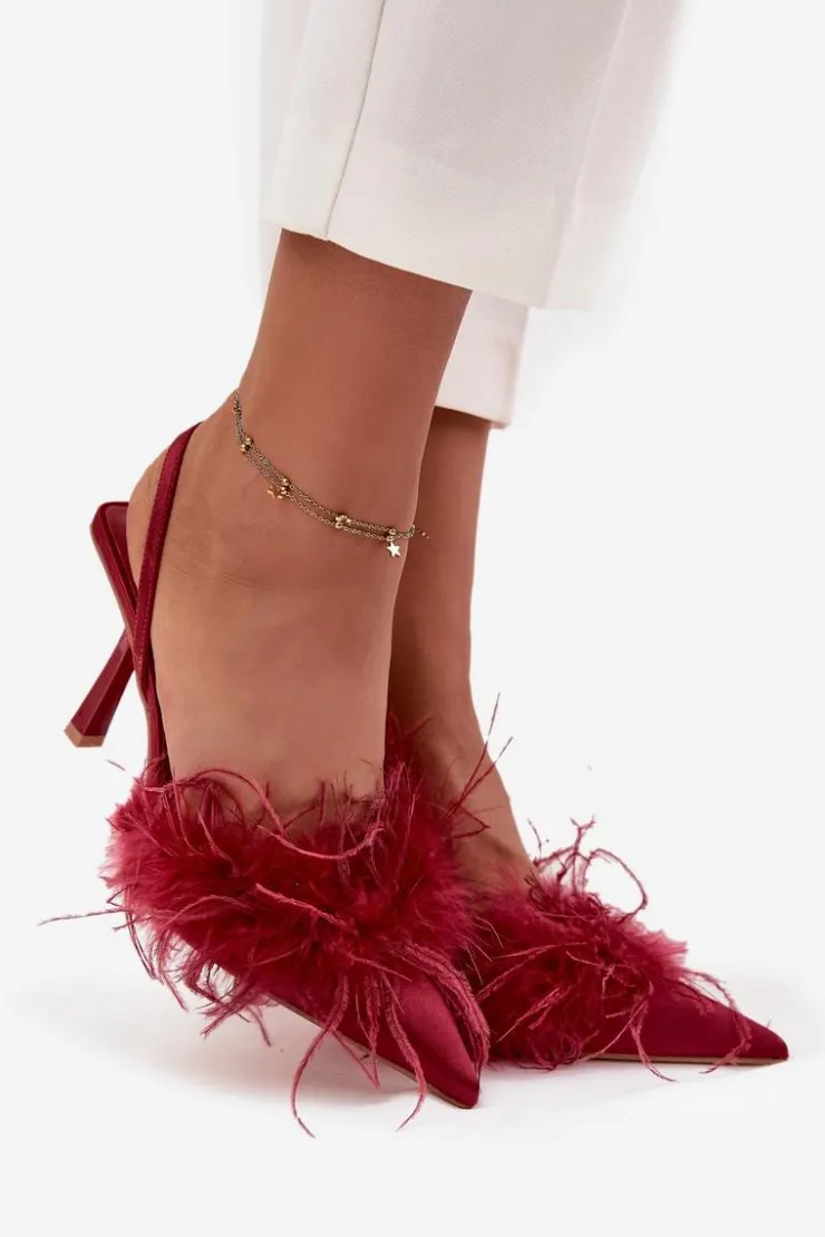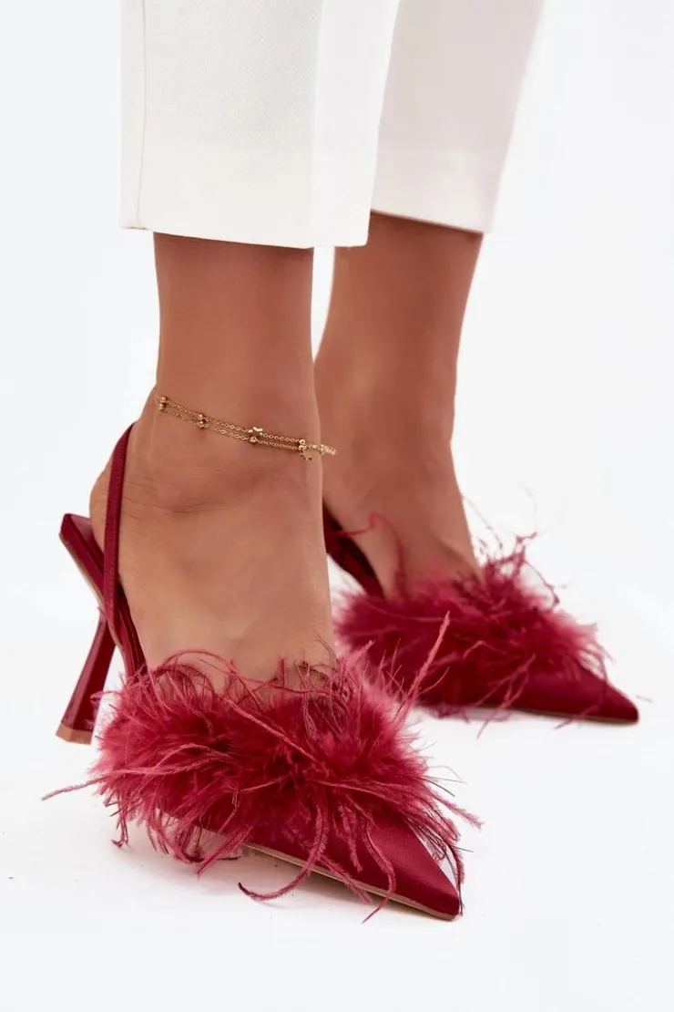 Damskie szpilki to elegancka propozycja dla kobiet ceniących styl i wyjątkowe detale. Delikatne piórka zdobiące cholewkę nadają oryginalności i subtelnego wdzięku, sprawiając, że prezentują się niezwykle efektownie. Smukłe, szpiczaste noski podkreślają kobiecą sylwetkę, a eko skórzana wkładka gwarantuje wygodę podczas noszenia. To modne i zmysłowe obuwie, które idealnie sprawdzi się przy eleganckich, wieczorowych stylizacjach, dodając im lekkości i wyrafinowanego uroku.