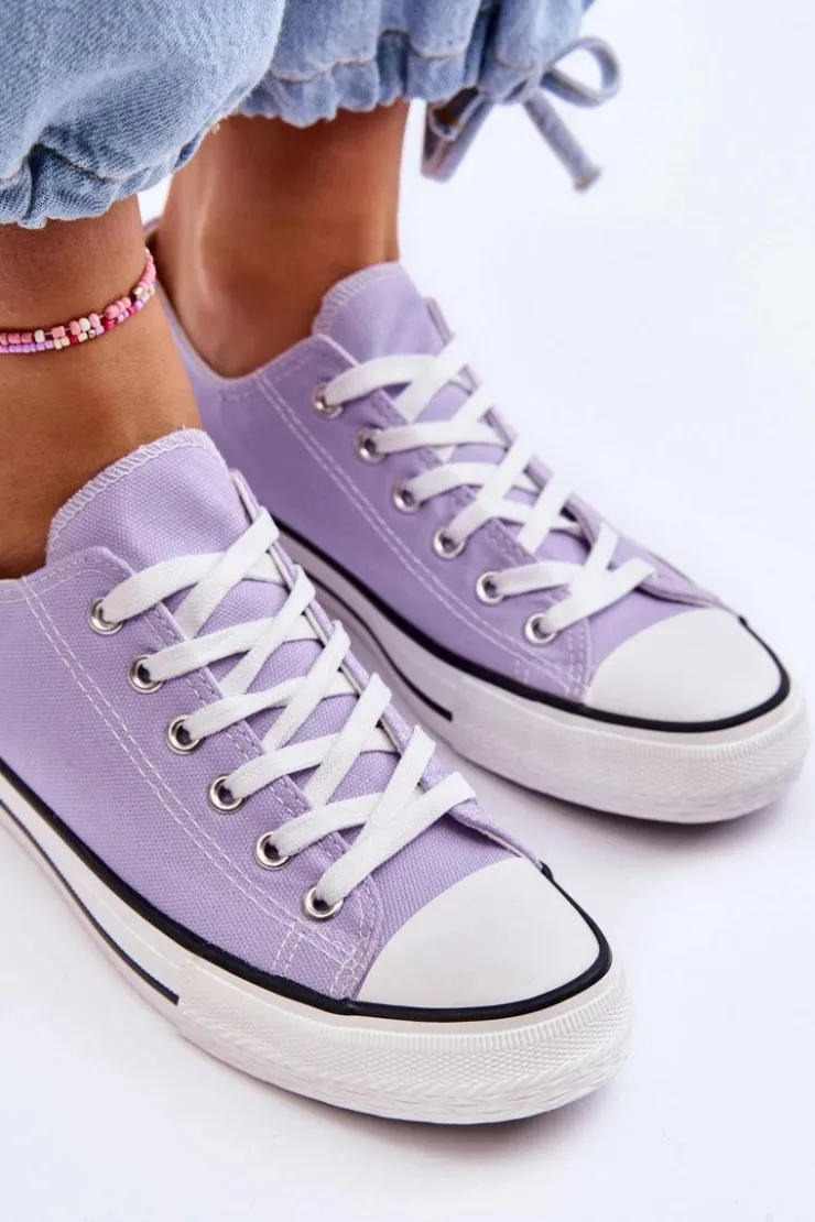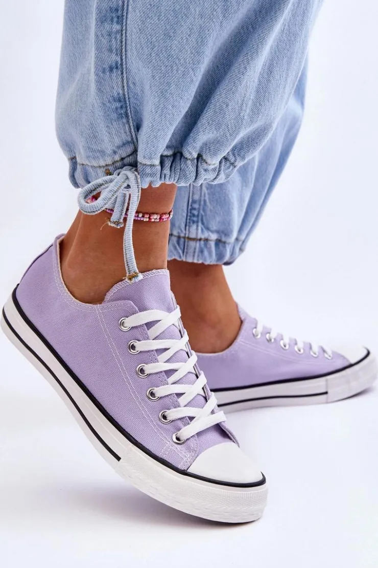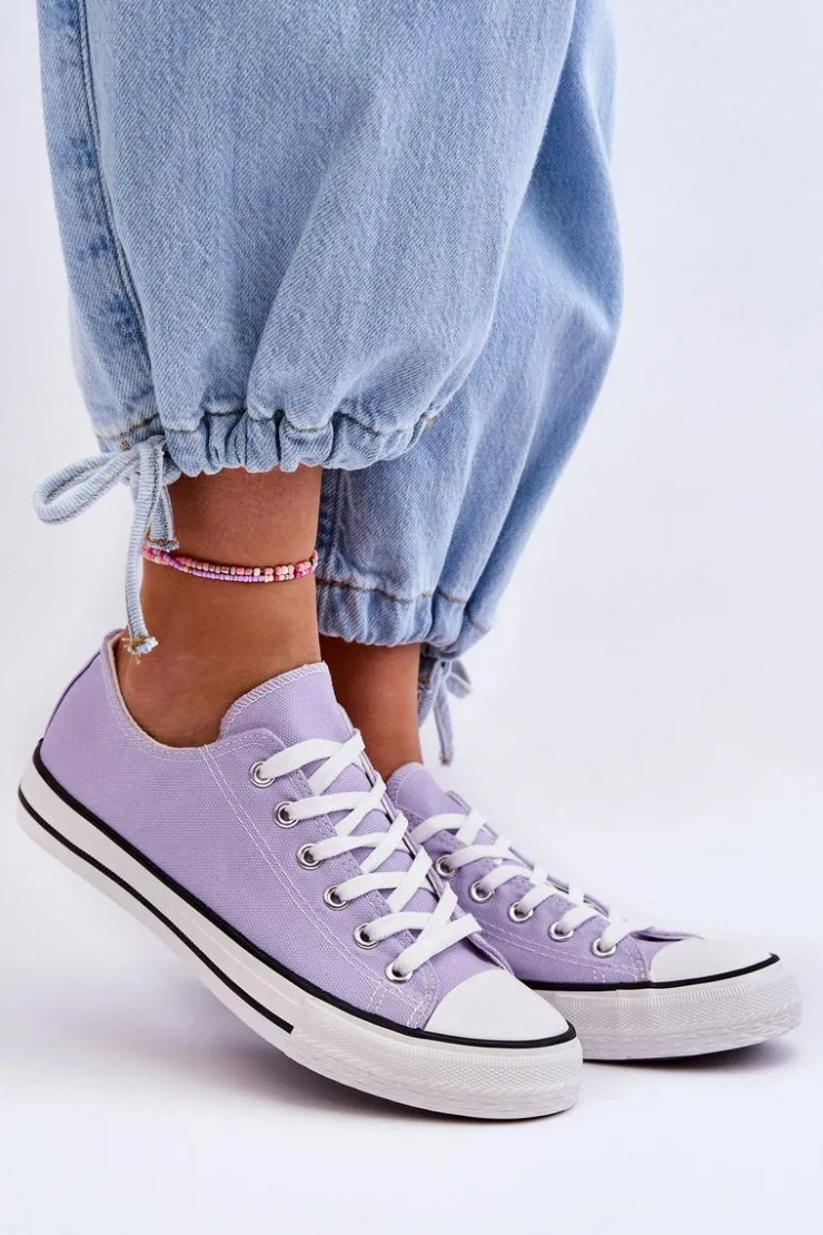 Klasyczne, sznurowane trampki damskie zostały wykonane z materiału tekstylnego. Posiadają gumową podeszwę, która jest dodatkowo antypoślizgowa. Ponadczasowy model, który powinnaś mieć w swojej szafie! Z pewnością założysz je do wielu stylizacji! Nosek został wzmocniony gumowym tworzywem. Wygodna, materiałowa wkładka zapewni komfort podczas użytkowania. Przy wyborze rozmiaru prosimy sugerować się tabelą rozmiarów.