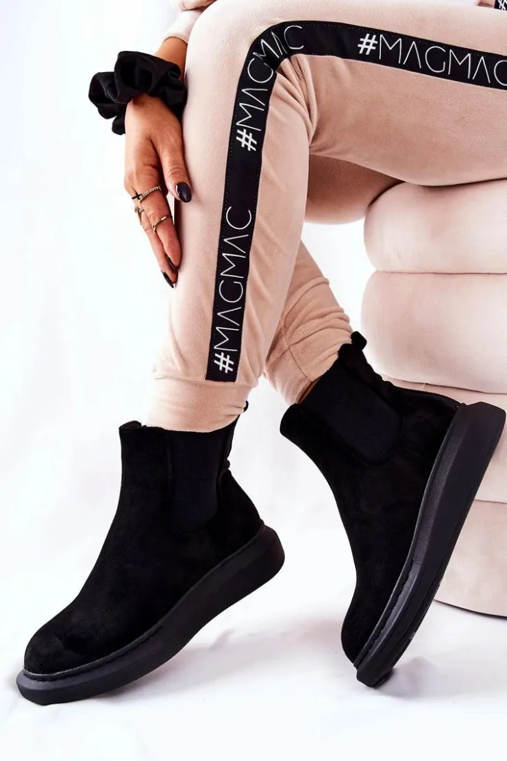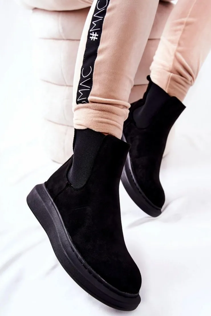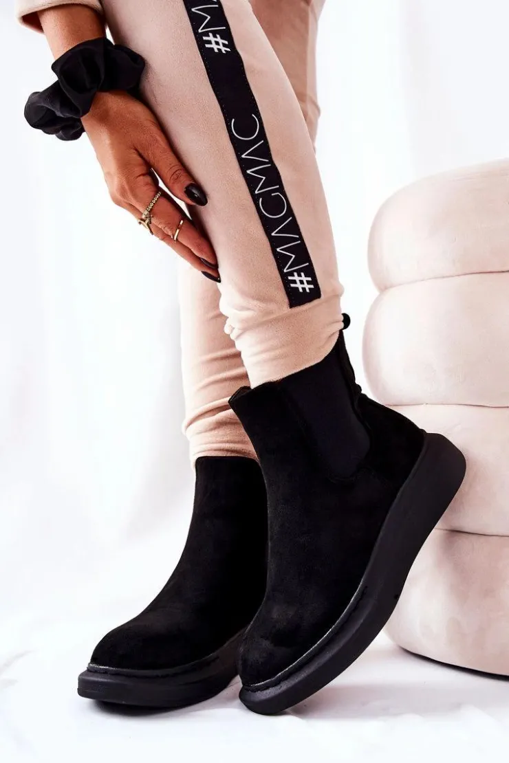 Hot Boto Zamszowe Botki Sztyblety Na Platformie Czarne Marissa