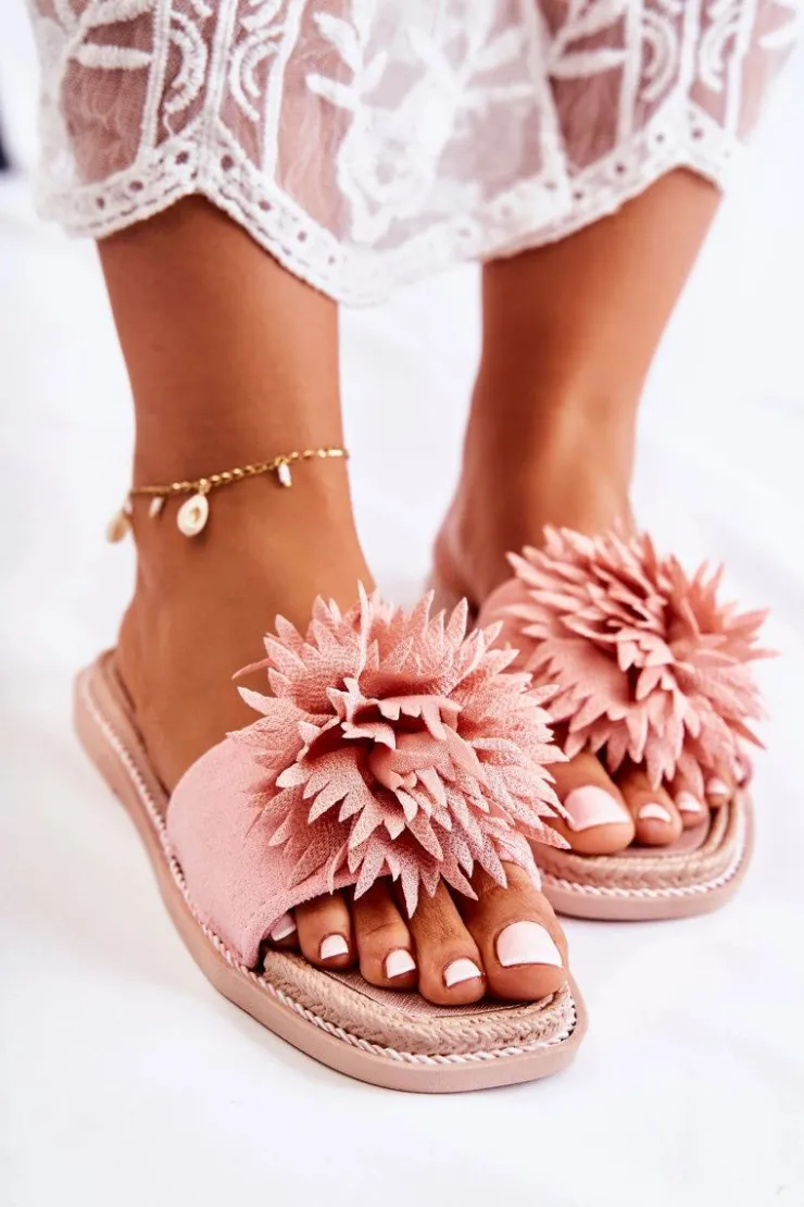 Klapki damskie z efektowną ozdobą na przodzie. Wykonane z eko zamszu, natomiast ozdoba z tkaniny. Wkładka oraz podeszwa są wykonane z gumowego tworzywa. Nosek odkryty, lekko kwadratowy. Zdobienie w postaci sznurka wokół podeszwy. Klapki osadzone na płaskim obcasie, z antypoślizgową podeszwą. Klapki są przewiewne, więc świetnie sprawdzą się w upalne dni! Model, który powinnaś mieć ! Nie czekaj i kup! Przy wyborze rozmiaru prosimy sugerować się tabelą rozmiarów.