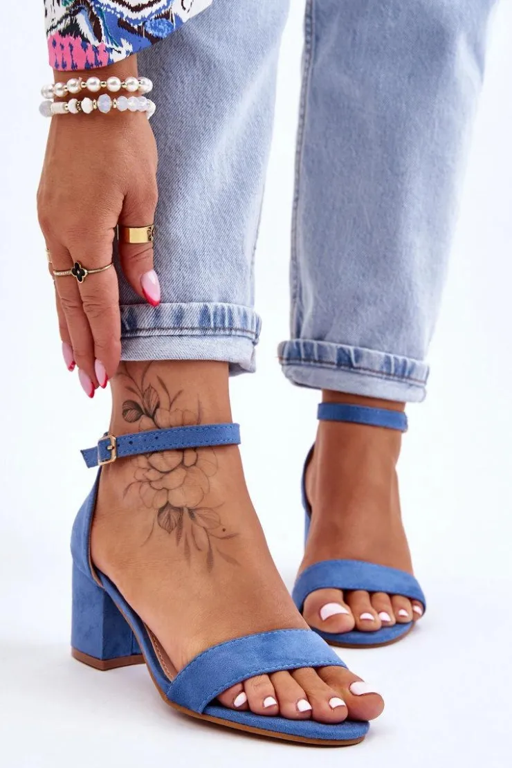 Wyjątkowe sandałki na niewysokim obcasie w postaci stabilnego słupka. Wykonane z przyjemnego w dotyku eko zamszu. Sandałki te posiadają usztywniany zapiętek. Wkładka wykonana z eko skóry zapewni komfortowe użytkowanie. Nosek odkryty, zaokrąglony. Zapinane wokół kostki na regulowany pasek ze sprzączką. Na pewno wykorzystasz je w wielu sytuacjach! Przy wyborze rozmiaru prosimy sugerować się tabelą rozmiarów.