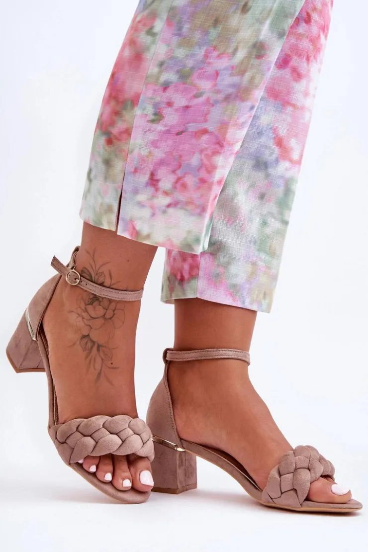 Hot Boto Zamszowe Sandały Z Warkoczem Ciemnobeżowe Essenza