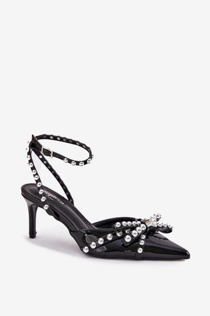 Szpilki damskie lakierowane z odkrytą piętą to elegancka i stylowa propozycja na wyjątkowe okazje. Szpiczaste noski nadają im smukłości, a subtelna kokardka na przodzie dodaje im uroku i kobiecości. Lakierowane wykończenie wprowadza do obuwia odrobinę blasku. Idealne na wieczorne wyjścia, wesela czy inne formalne uroczystości. Przy wyborze rozmiaru prosimy sugerować się tabelą rozmiarów.
