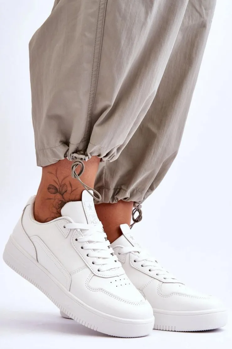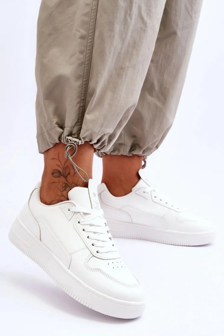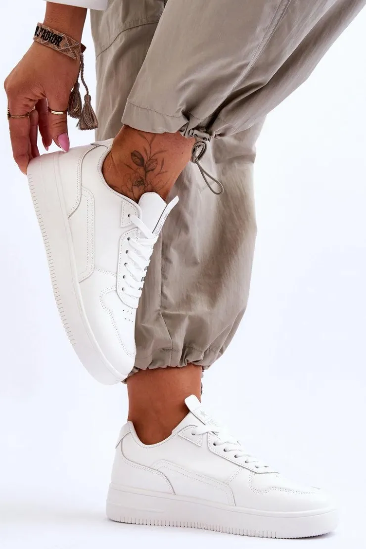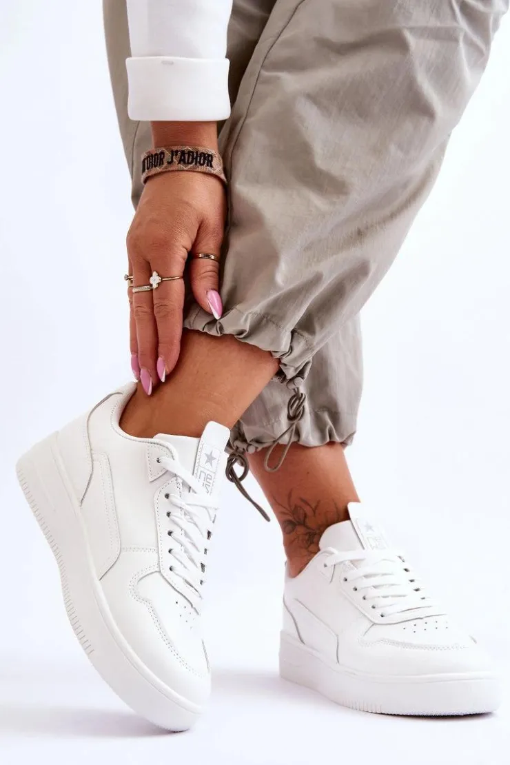 Klasyczne, ponadczasowe buty sportowe. Zostały wykonane z wysokiej jakości eko skóry. Model ten posiada sznurowanie. Z przodu posiadają delikatną perforację. Wkładka została wykonana z materiału. Buty te osadzono na platformie. Koniecznie powinnaś je mieć! Przy wyborze rozmiaru prosimy kierować się tabelą rozmiarów.
