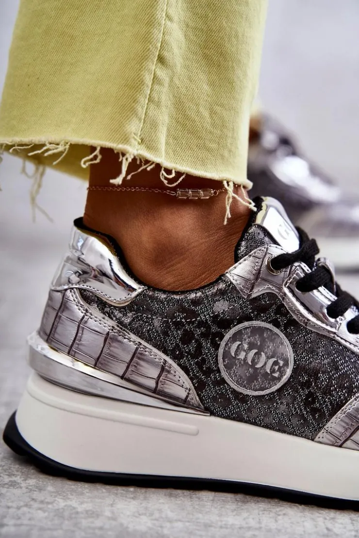 Modne obuwie sportowe marki GOE zostało wykonane z wysokiej jakości materiałów. Ciekawe wzornictwo wyróżnia te buty na tle innych. Posiadają ozdobny, gumowy emblemat z logo marki. Nad obcasem znajduje się ozdobny element. Model klasycznie sznurowany z blaszką z wygrawerowanym napisem GOE. Sneakersy zostały osadzone na masywnej platformie i koturnie. Niezwykle miękka, eko skórzana wkładka zapewni wygodę podczas użytkowania. Przy wyborze rozmiaru prosimy sugerować się tabelą rozmiarów.