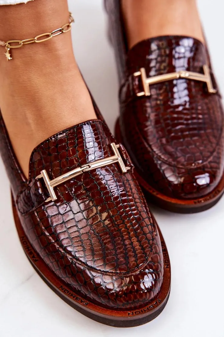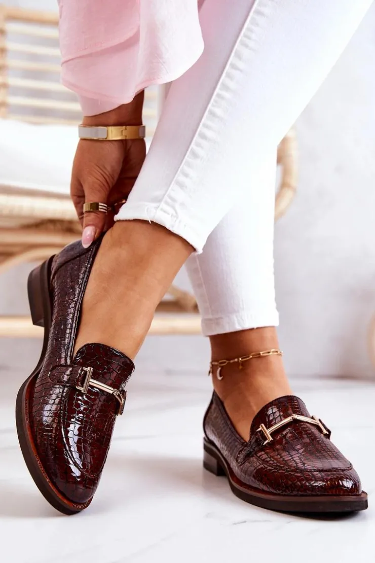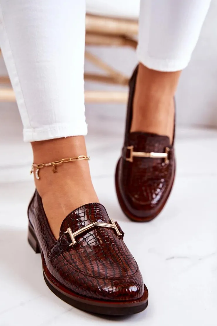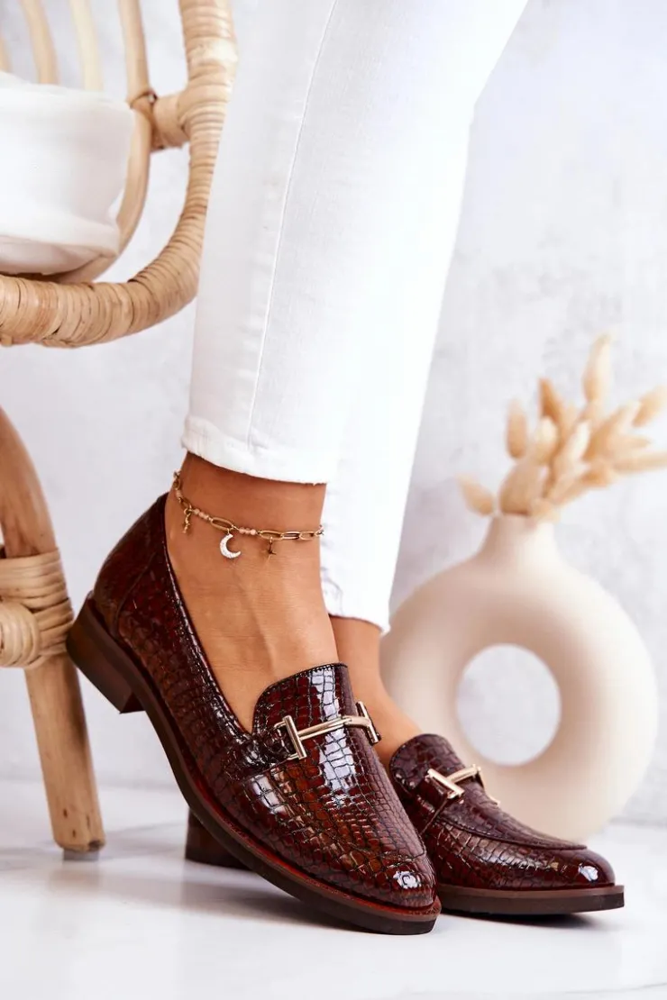 Hot Laura Messi Damskie Półbuty Wężowe 2307 Brązowe