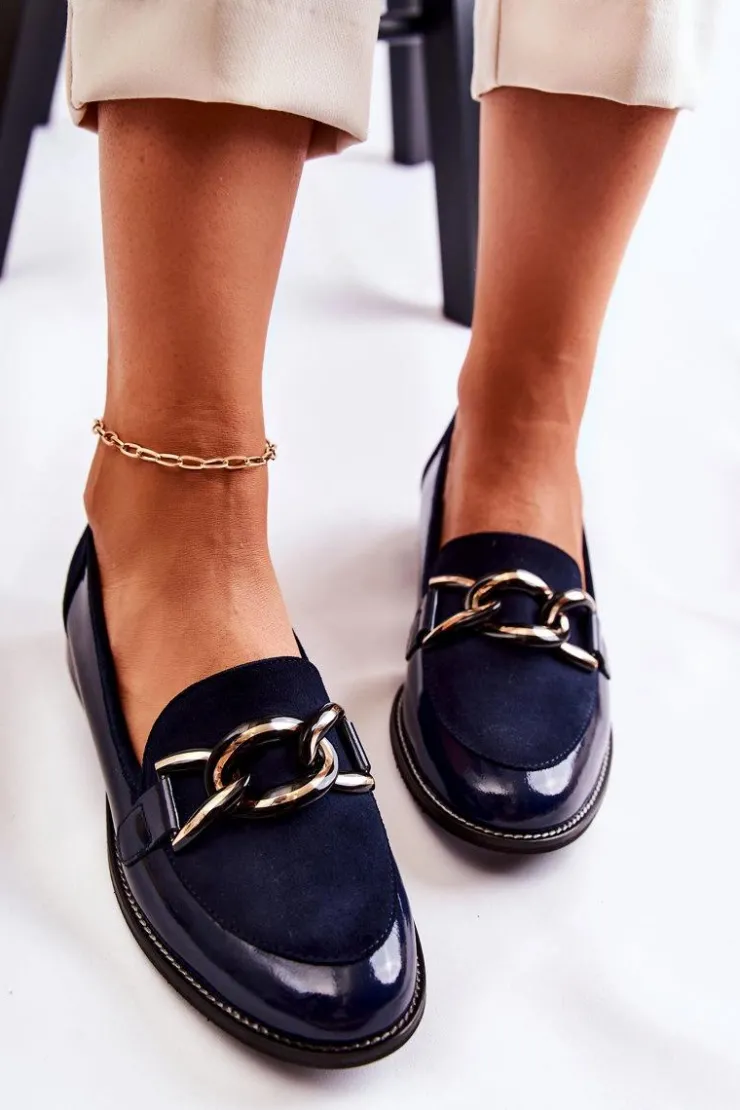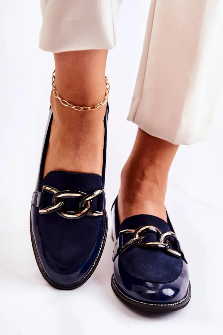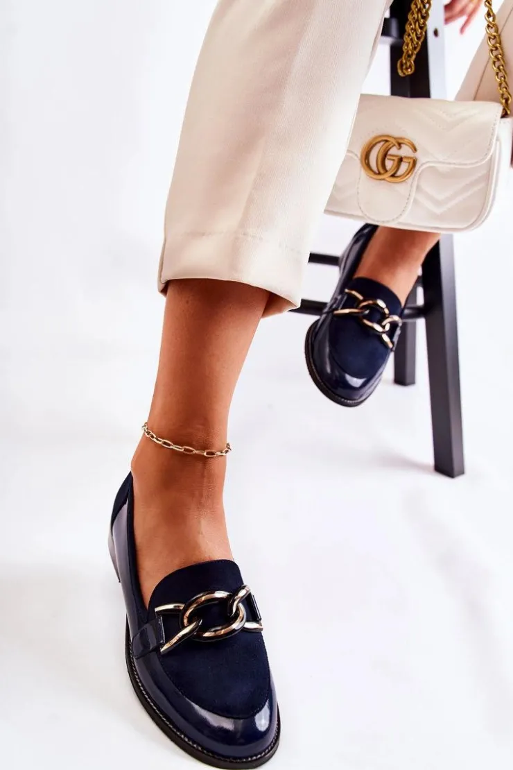 Eleganckie mokasyny od marki Laura Messi zostały wykonane z połączenia naturalnej skóry i naturalnego zamszu. Skórzana wkładka zapewni wysoki komfort użytkowania. Osadzone na płaskim obcasie z przeszywaną podeszwą. Buty te posiadają modny łańcuch na przodzie. Nosek zaokrąglony. Mokasyny posiadają usztywniany zapiętek. Koniecznie sprawdź całą naszą kolekcję mokasyn! Przy wyborze rozmiaru prosimy sugerować się tabelą rozmiarów.