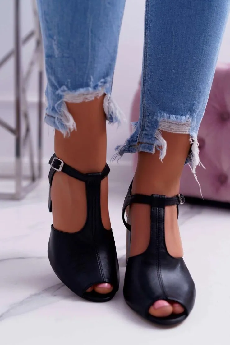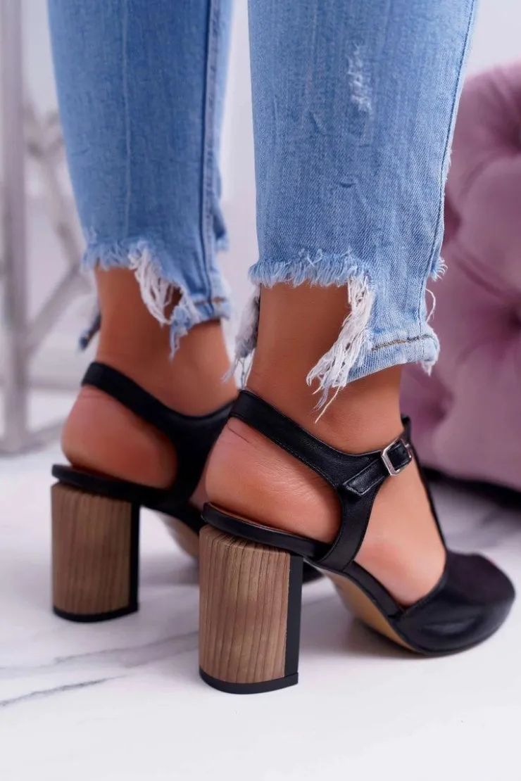 Hot Maciejka Skórzane Damskie Sandały Czarne 04117