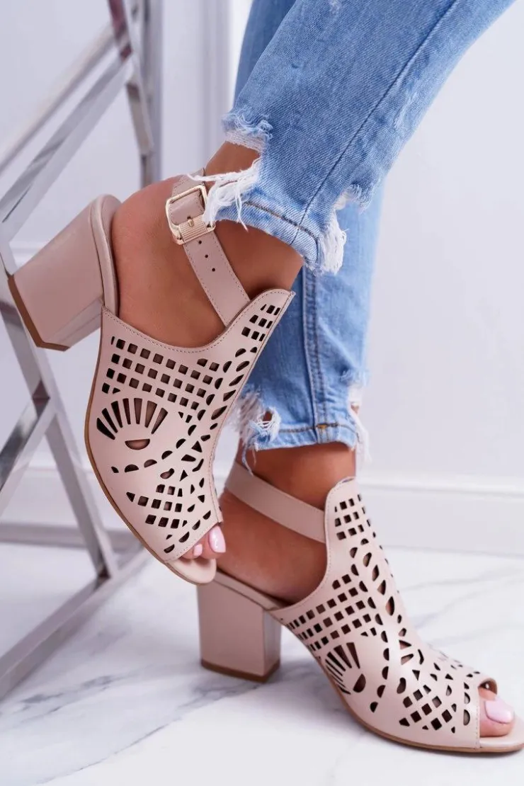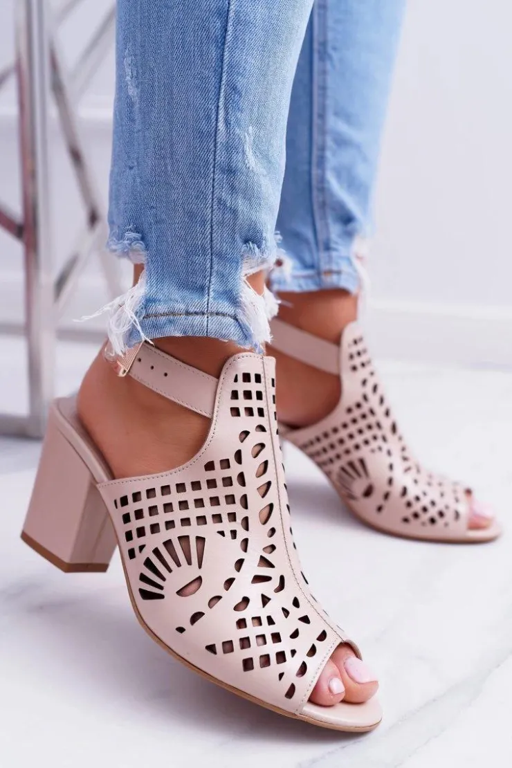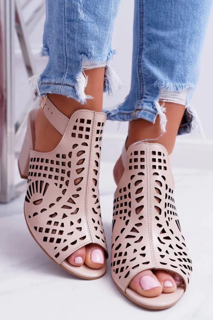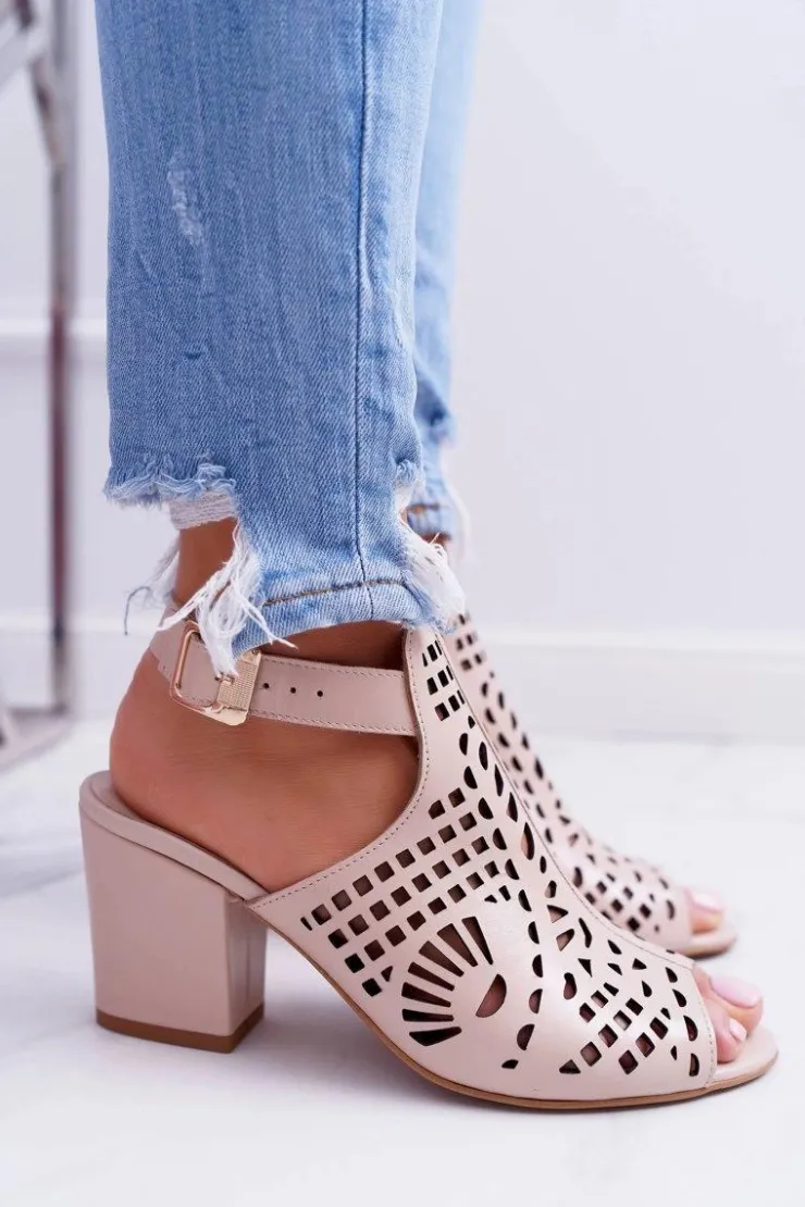 Laura Messi Sandały Na Obcasie*Sandały Na Słupku 1924 Skóra Beżowe Montoro