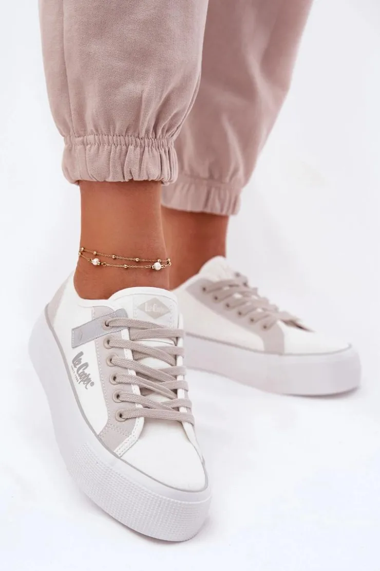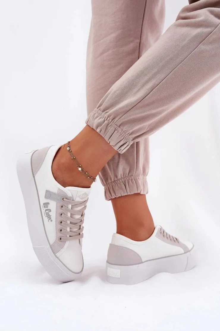 Damskie trampki marki Lee Cooper, wykonane z materiału tekstylnego, to świetny wybór dla osób ceniących komfort i styl. Osadzone na platformie, zapewniają dodatkową stabilność i wygodę przez cały dzień. Zaokrąglone noski gwarantują swobodę ruchu, a miękka wkładka zapewnia odpowiednią amortyzację. Klasyczne sznurowanie pozwala na idealne dopasowanie do stopy, a subtelne logo na boku cholewki dodaje modnego akcentu. Te trampki to doskonały wybór do codziennych stylizacji! Przy wyborze rozmiaru prosimy sugerować się poniższą tabelą rozmiarów.