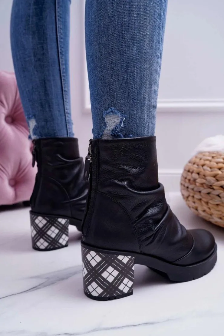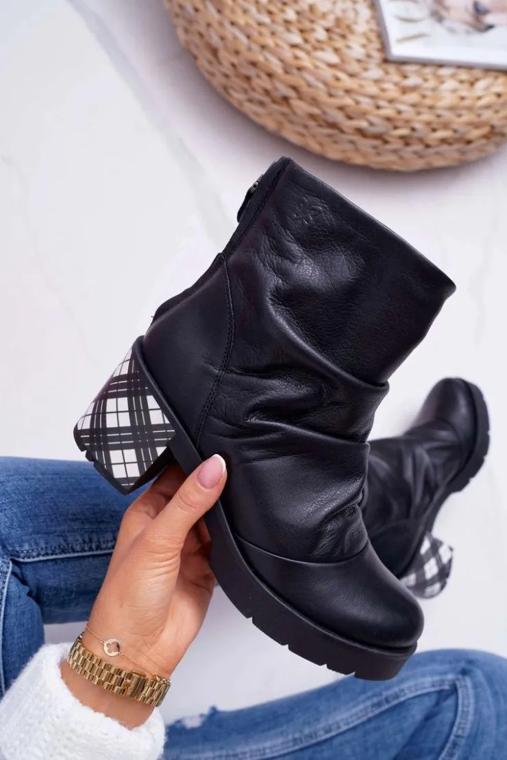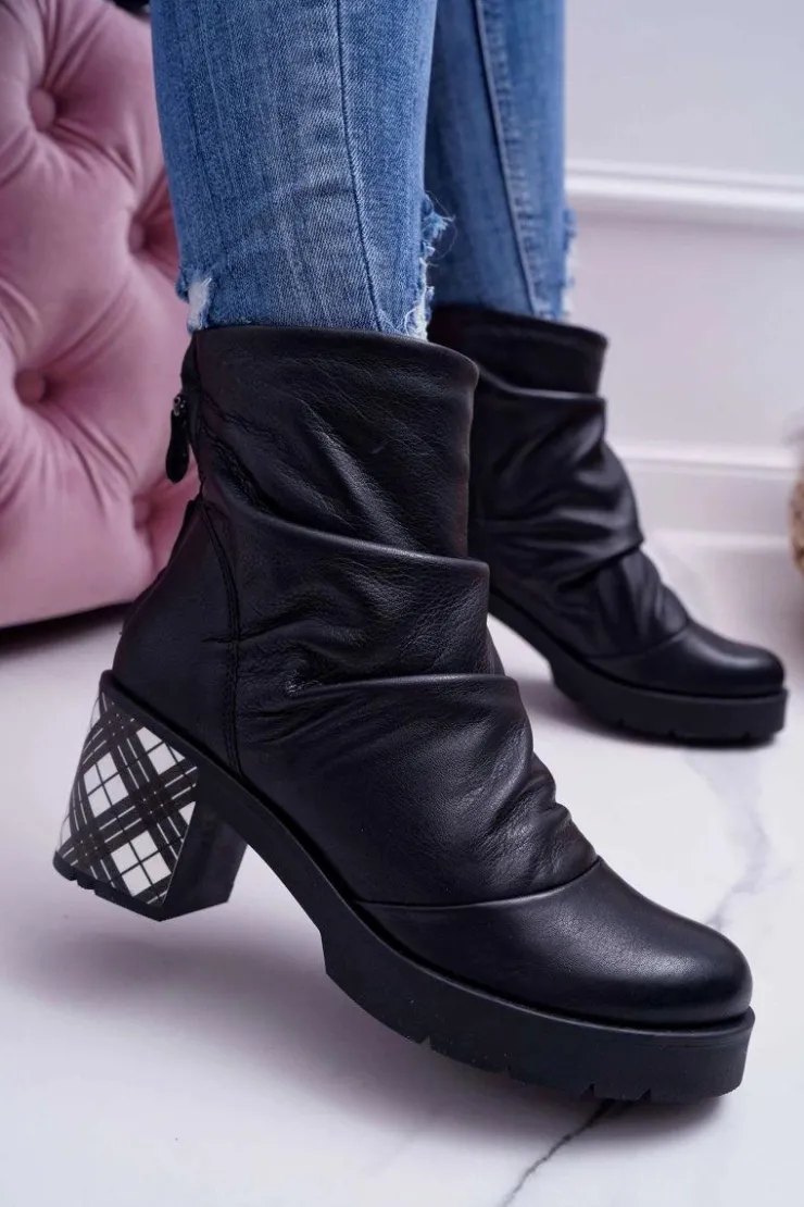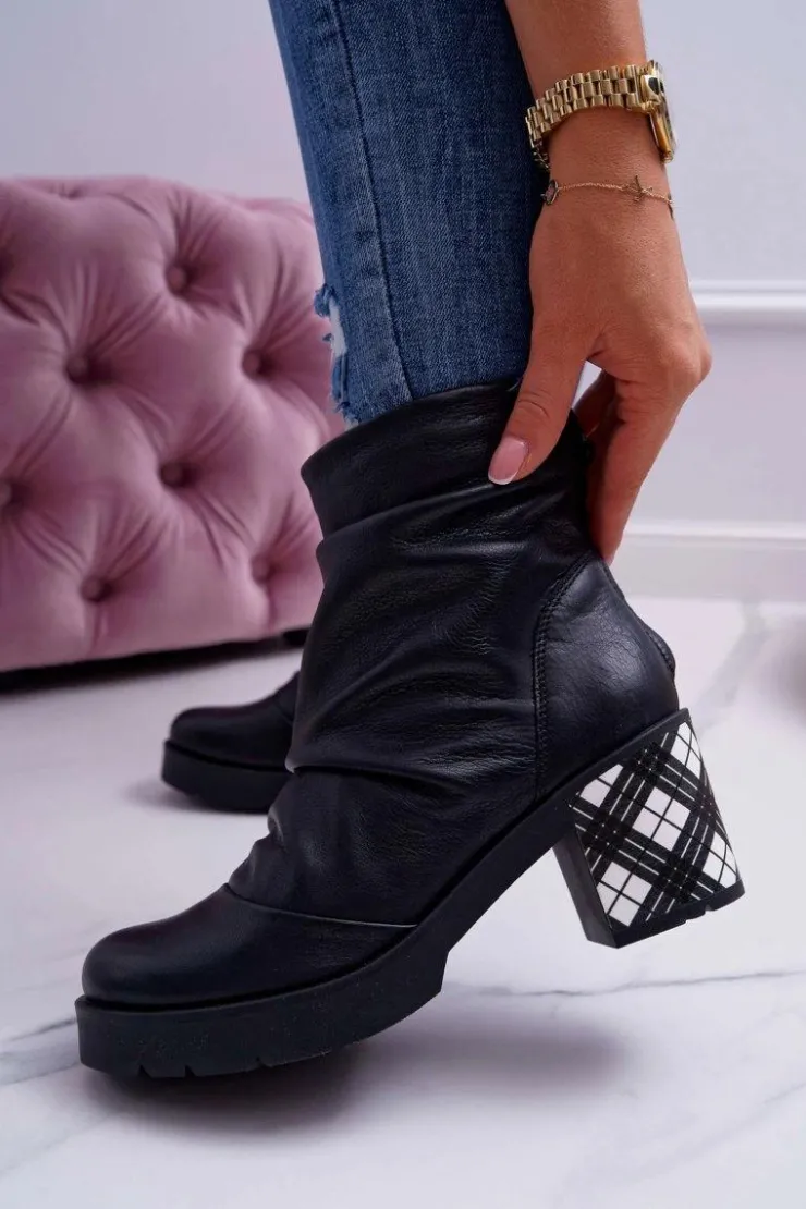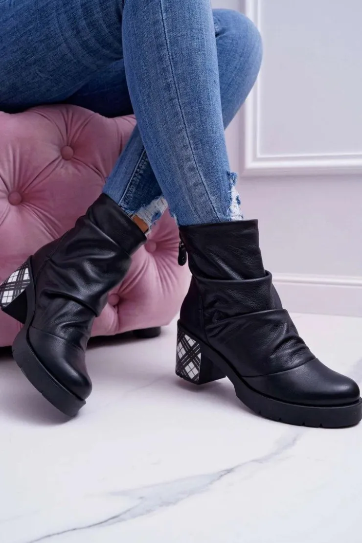 Maciejka Botki Maciejka|Botki Na Słupku*Botki Damskie Skórzane Czarne 04216-01