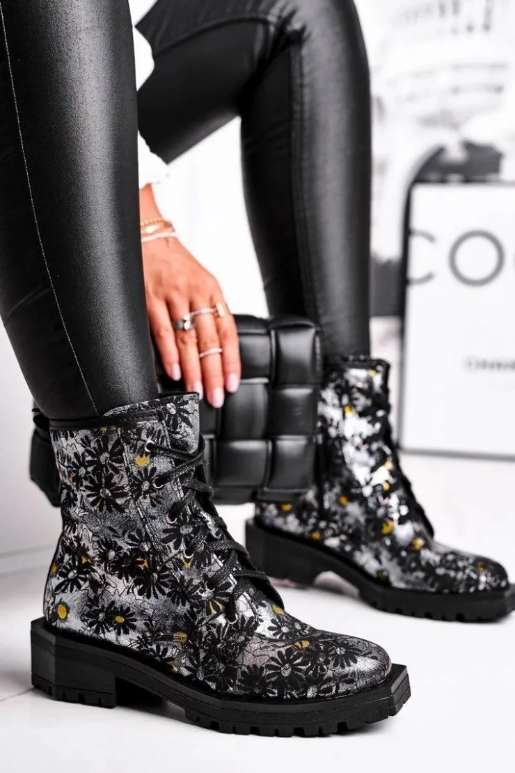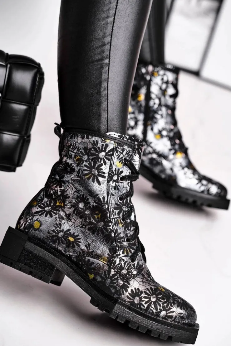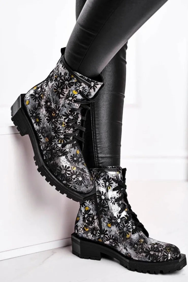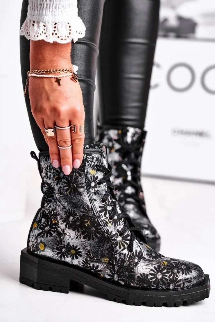 Maciejka Botki Maciejka|Botki Sznurowane*Botki Damskie Skórzane Trzewiki Kwiaty 04869-38