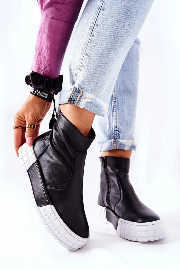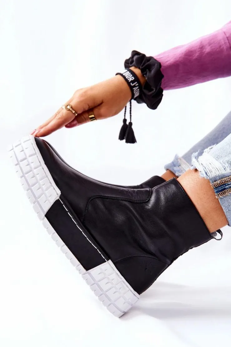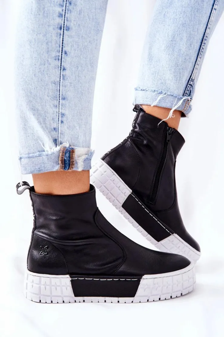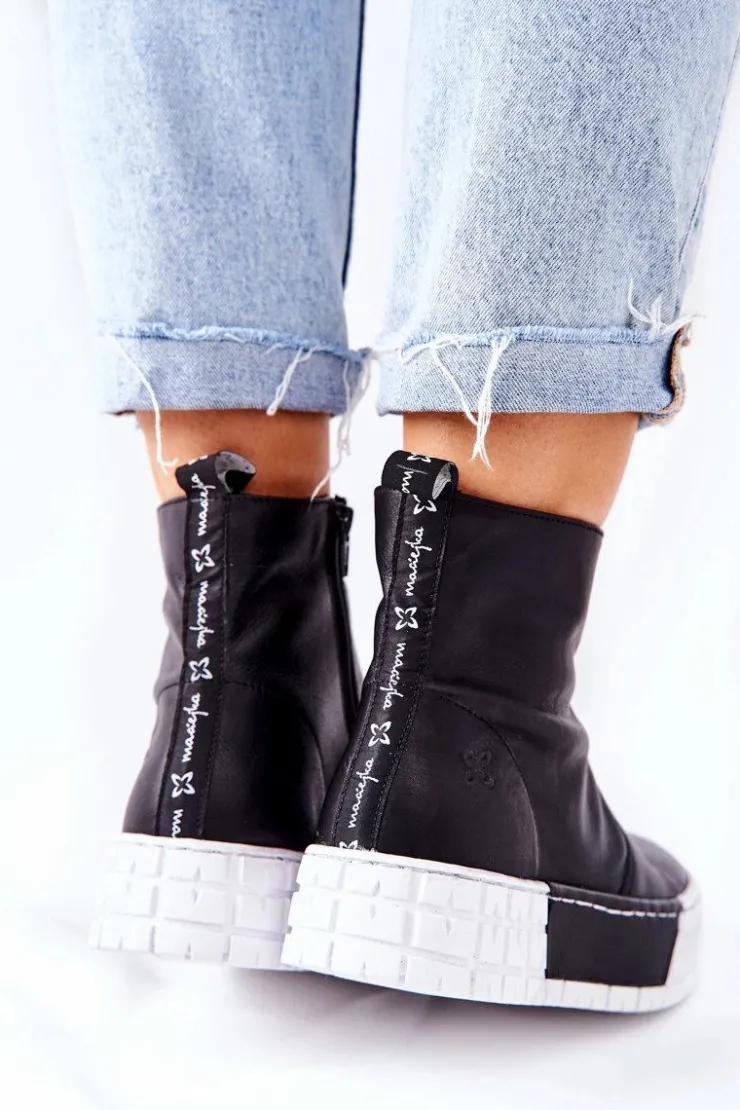 Botki na grubej podeszwie renomowanej marki Maciejka. Wykonane z naturalnej skóry. Zapinane na suwak. Wszyty materiał z logo firmy Maciejka tworzy ciekawe zestawienie z całością. Antypoślizgowa podeszwa zapewnia komfort użytkowania. Sprawdź całą kolekcję! Botki to MUST HAVE każdej kobiety! Przy wyborze rozmiaru prosimy sugerować się tabelą rozmiarów.