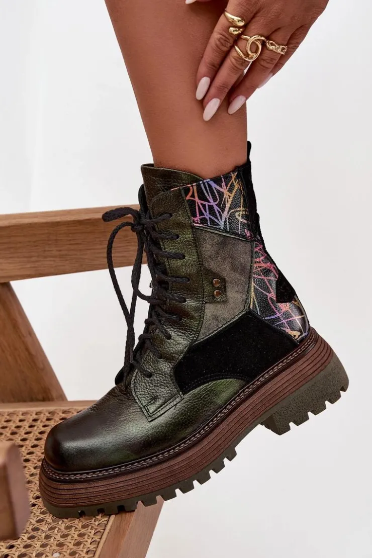 Botki damskie marki Maciejka to propozycja dla kobiet, które cenią sobie oryginalny styl i wygodę. Wykonane z wysokiej jakości naturalnej skóry, prezentują się elegancko i są wyjątkowo trwałe. Model osadzony został na solidnej platformie, która zapewnia stabilność oraz komfort podczas noszenia. Buty posiadają zarówno zapięcie na zamek, jak i klasyczne sznurowanie, co pozwala na idealne dopasowanie do stopy i wygodne zakładanie. Kwadratowe noski nadają całości nowoczesnego charakteru, podkreślając nietuzinkowy fason botków. Wnętrze zostało ocieplone miękkim, przyjemnym w dotyku materiałem, który gwarantuje komfort termiczny w chłodniejsze dni. To stylowe i oryginalne botki, które świetnie sprawdzą się w codziennych stylizacjach, dodając im wyrazistości i charakteru.