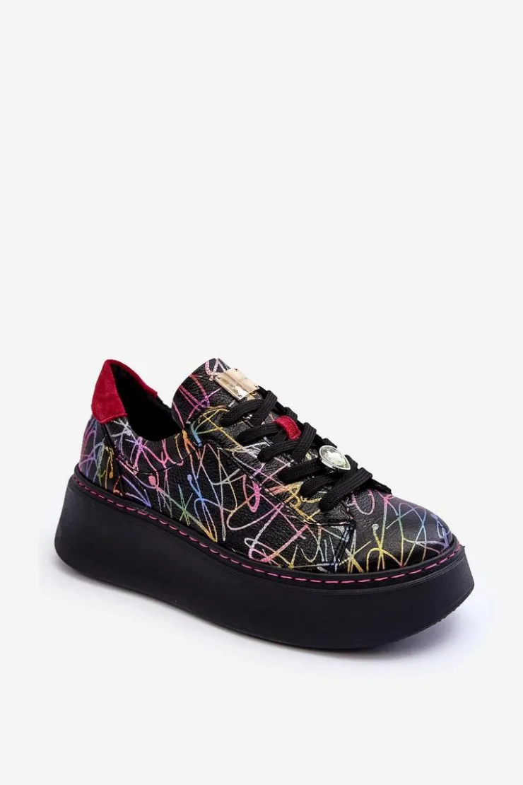 Buty sportowe marki Maciejka. Wykonane z naturalnej skóry z dbałością o szczegóły. Osadzone na masywnej platformie. Model klasycznie sznurowany z usztywnionym zapiętkiem. Noski zaokrąglone. Miękka, wkładka zapewni komfort podczas użytkowania. Na sznurówkach przypięta jest mała, biżuteryjna ozdoba. Przy wyborze rozmiaru prosimy sugerować się tabelą rozmiarów.