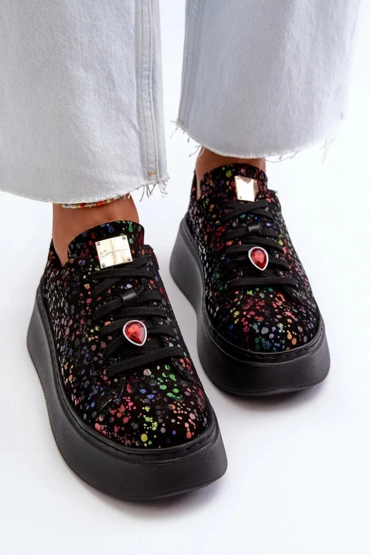 Maciejka Buty Sportowe Na Platformie*Skórzane Sneakersy Na Platformie 6191S-01 Czarne