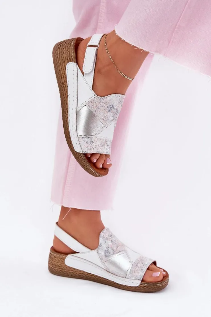 Sandały damskie z naturalnej skóry to elegancka i wygodna opcja na letnie dni. Osadzone na koturnie z imitacją plecionki, te sandały oferują subtelną wysokość, która dodaje lekkości sylwetce, jednocześnie zapewniając stabilność i komfort. Model zapinany na rzep pozwala na łatwe dopasowanie do stopy, co sprawia, że obuwie jest praktyczne i wygodne. Doskonałe do letnich sukienek, spódnic, a także spodni. Przy wyborze rozmiaru prosimy sugerować się tabelą rozmiarów.