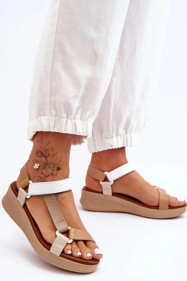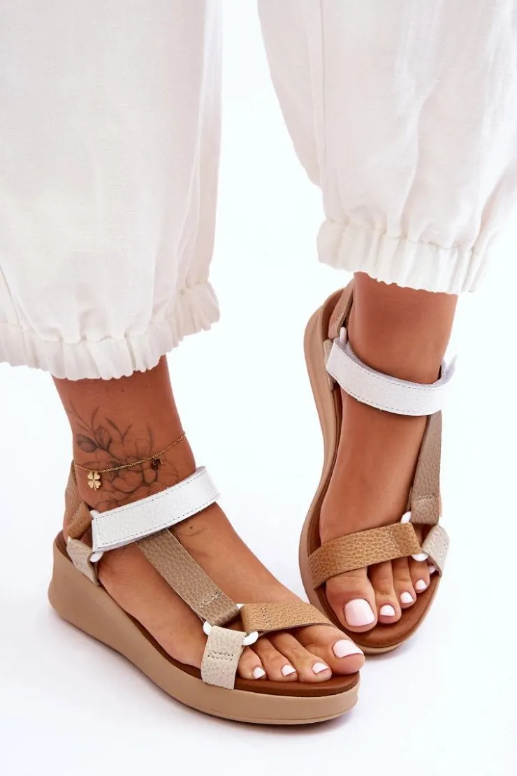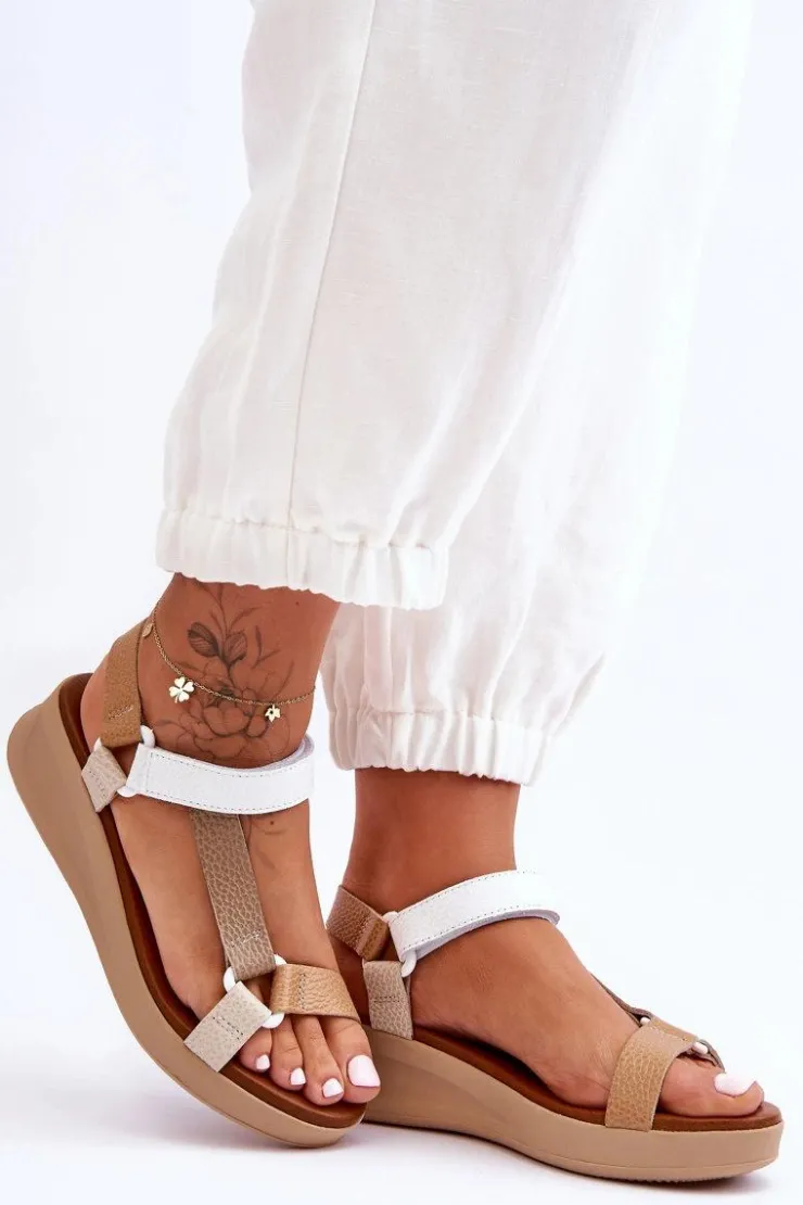 Maciejka Sandały Na Koturnie*Skórzane Sandały L5186-04 Beżowe