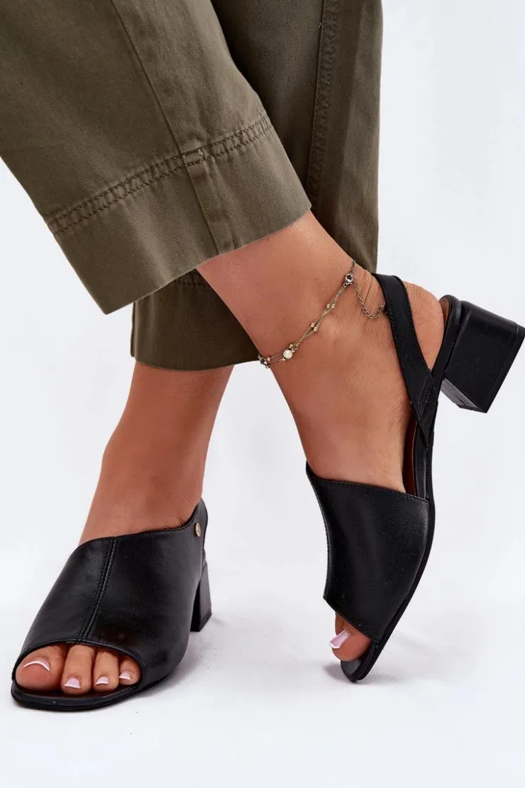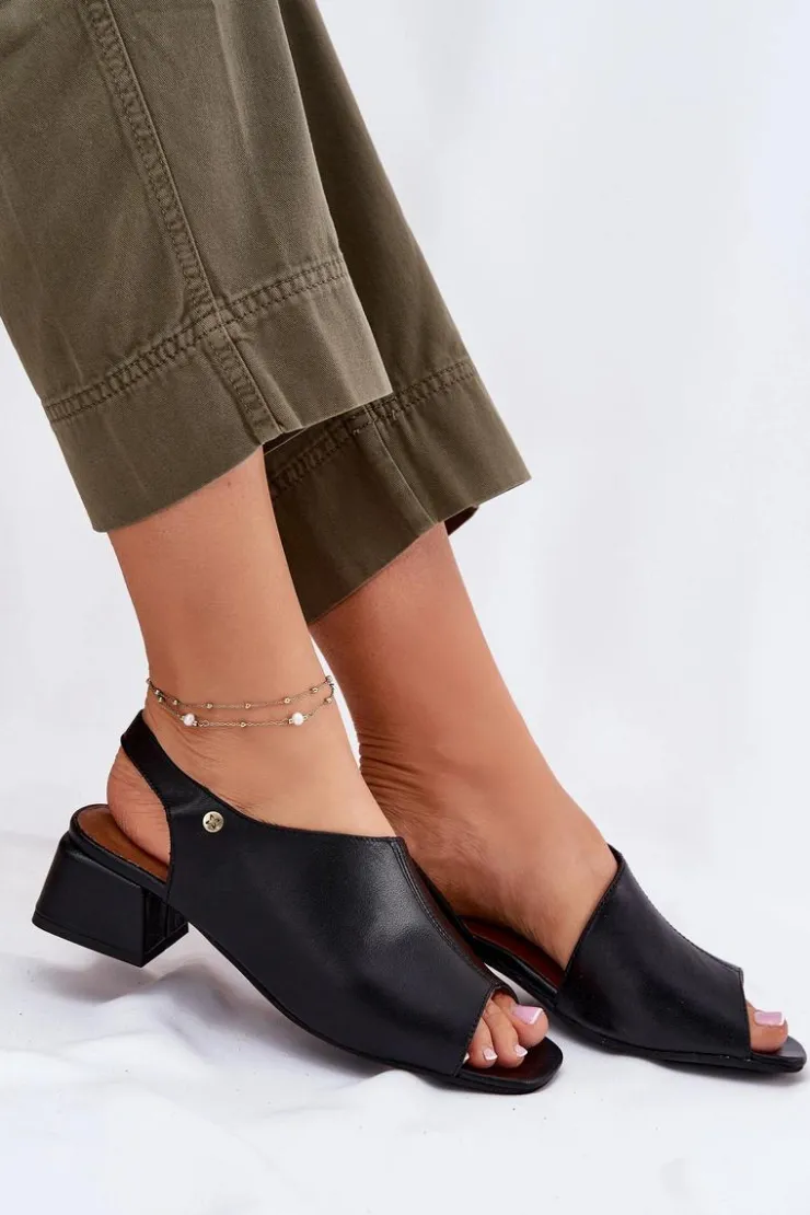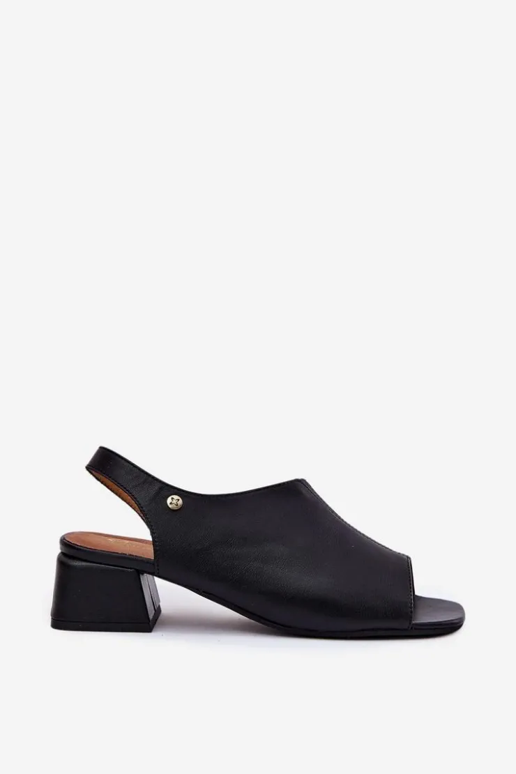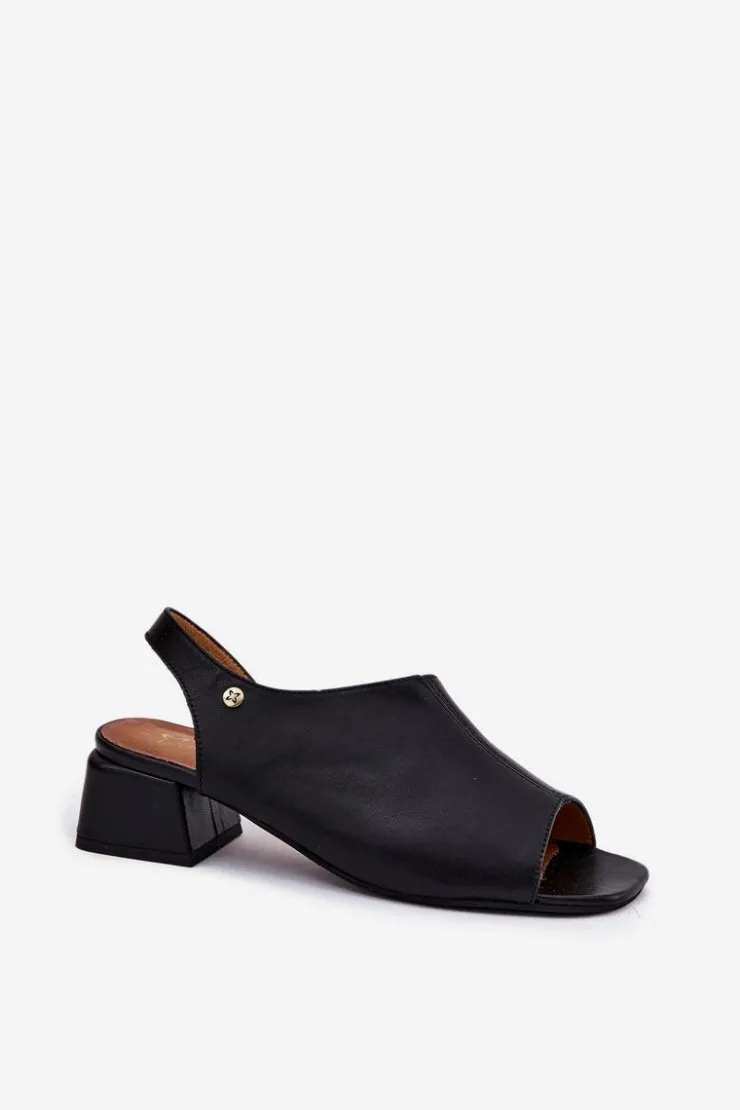 Maciejka Sandały Na Obcasie*Skórzane Sandały Damskie Na Klocku 06975-01 Czarne