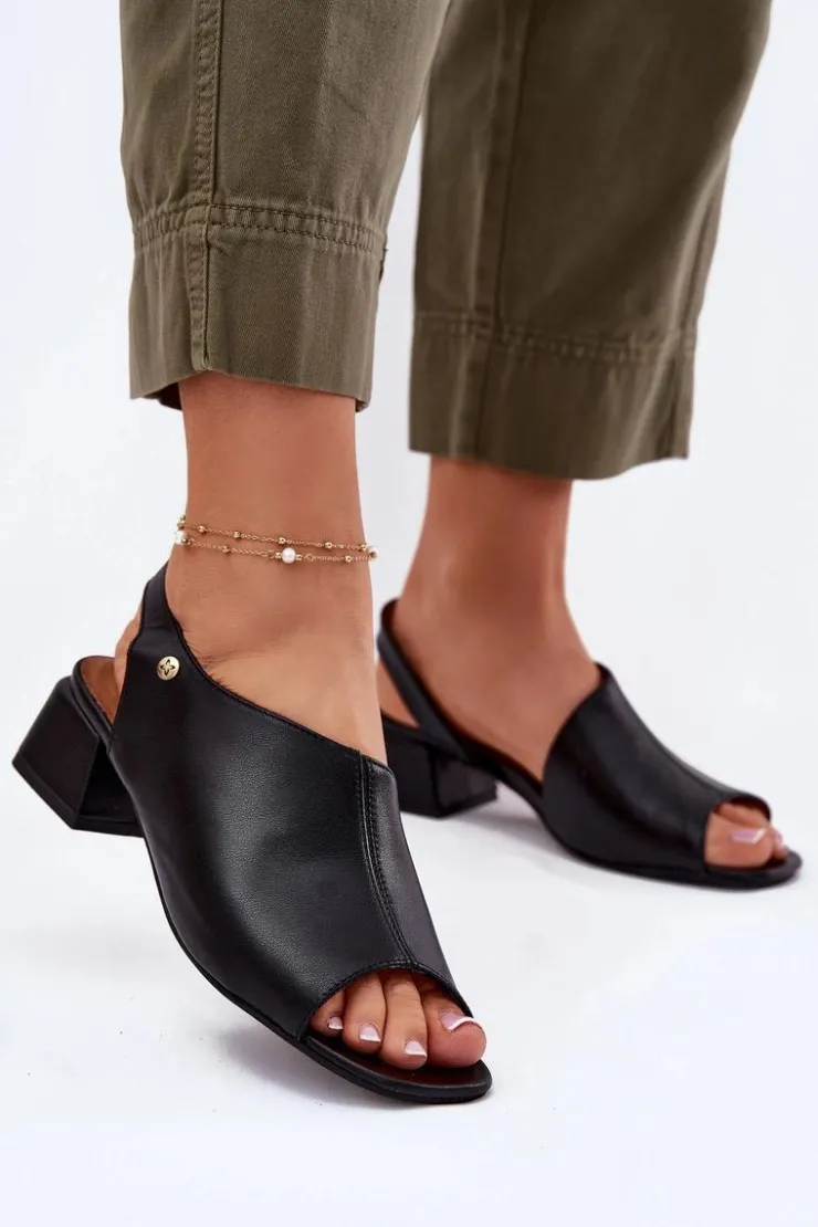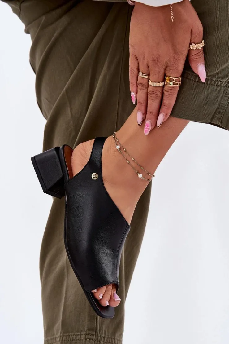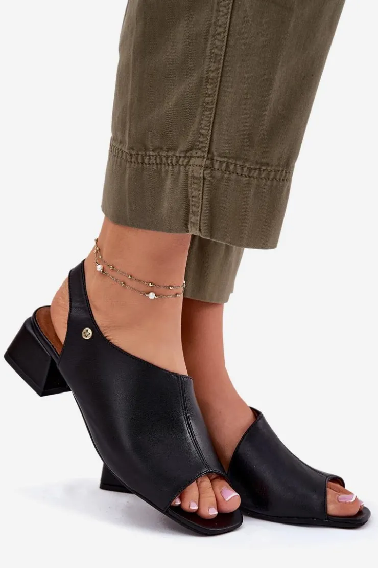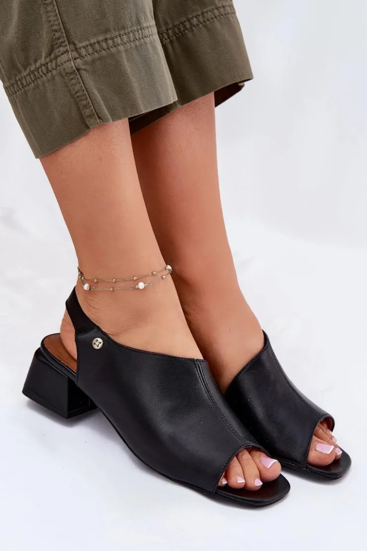 Maciejka Sandały Na Obcasie*Skórzane Sandały Damskie Na Klocku 06975-01 Czarne