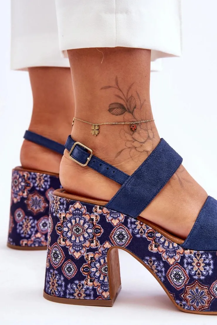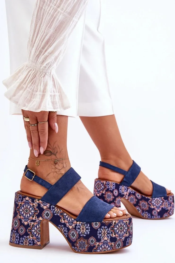 Niezwykłe sandały damskie zostały wykonane z wysokiej jakości naturalnej skóry. Model ten posiada miękką wkładkę. Sandałki osadzono na masywnej platformie i obcasie w postaci słupka. Buty te posiadają regulowany paseczek zapinany na sprzączkę. Koniecznie powinnaś mieć ten model w swojej szafie! Przy wyborze rozmiaru prosimy sugerować się tabelą rozmiarów.