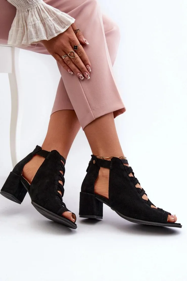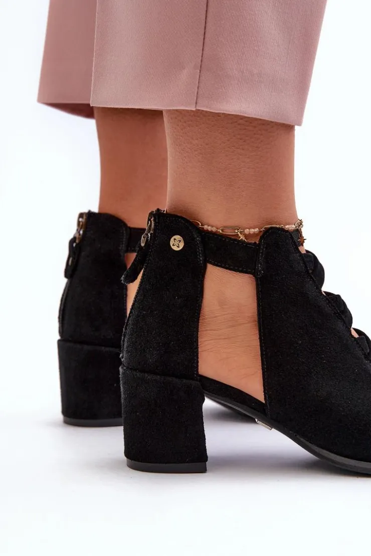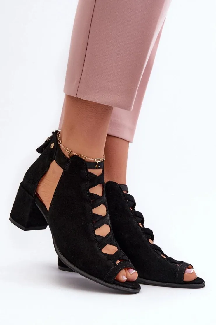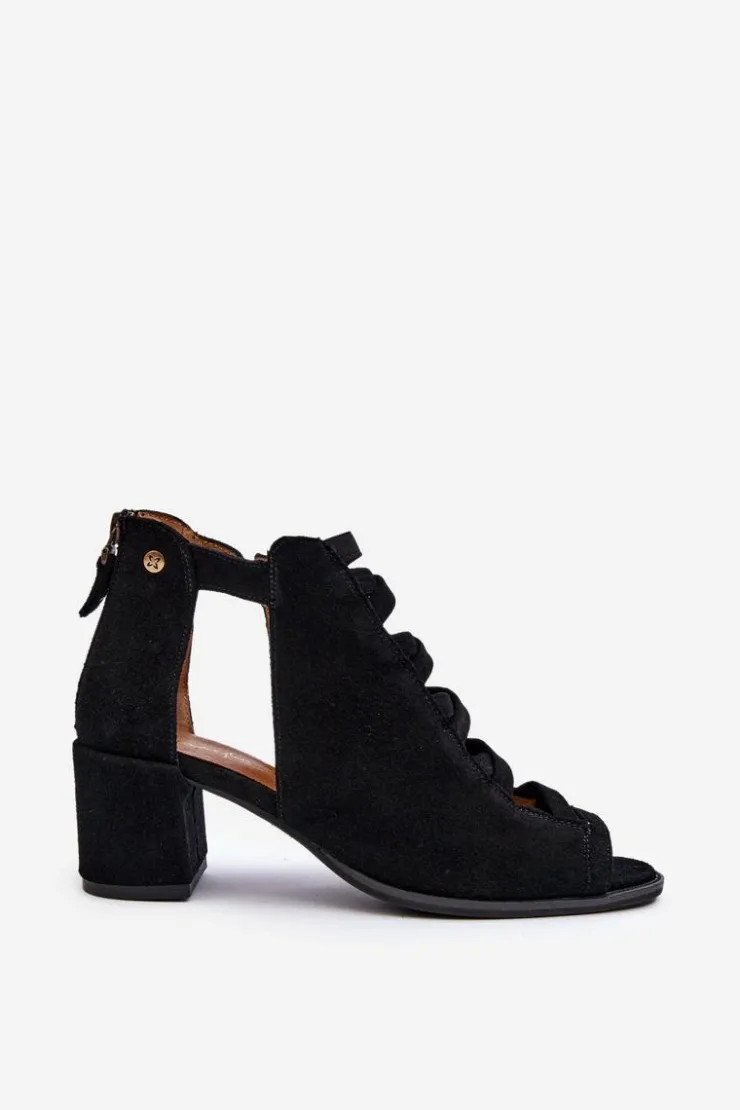 Sandały damskie od marki Maciejka to połączenie elegancji i wygody. Wykonane z naturalnego zamszu, te sandały nie tylko prezentują się stylowo, ale także gwarantują wysoki komfort noszenia. Zapinane na zamek z tyłu, zapewniają stabilność i idealne dopasowanie do stopy. Osadzone na obcasie w postaci słupka. Idealne na letnie wieczory! Przy wyborze rozmiaru prosimy sugerować się tabelą rozmiarów.
