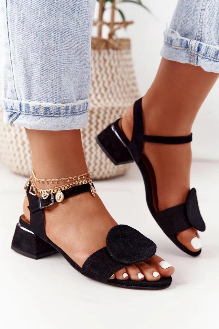 Maciejka Sandały Na Obcasie*Zamszowe Sandały Na Obcasie 5198A-01 Czarne
