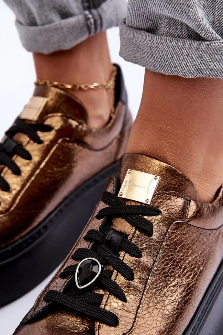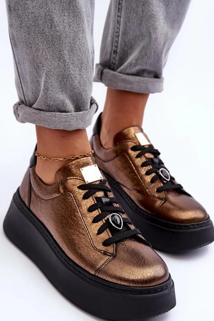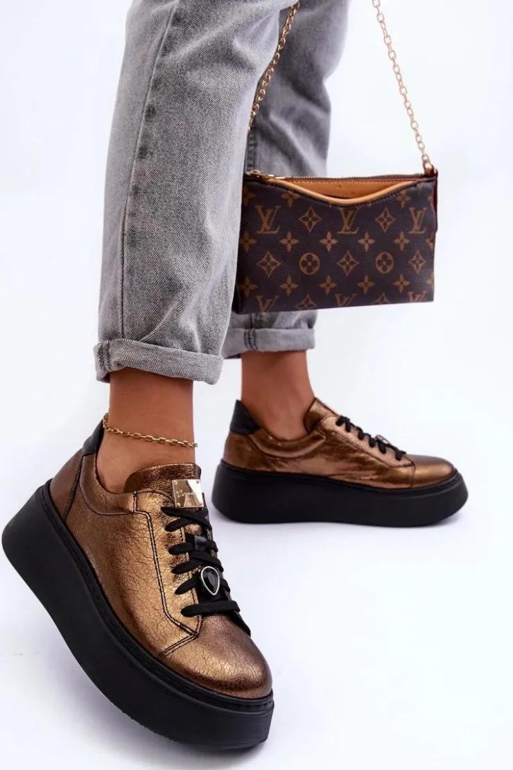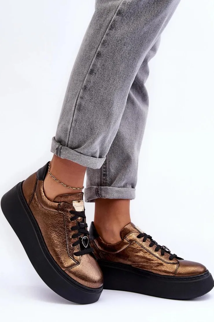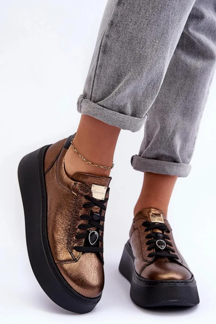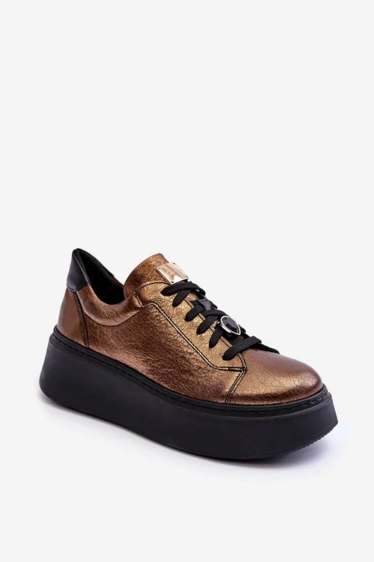 Maciejka Skórzane Buty Sportowe Na Platformie 06191-24 Miedziane