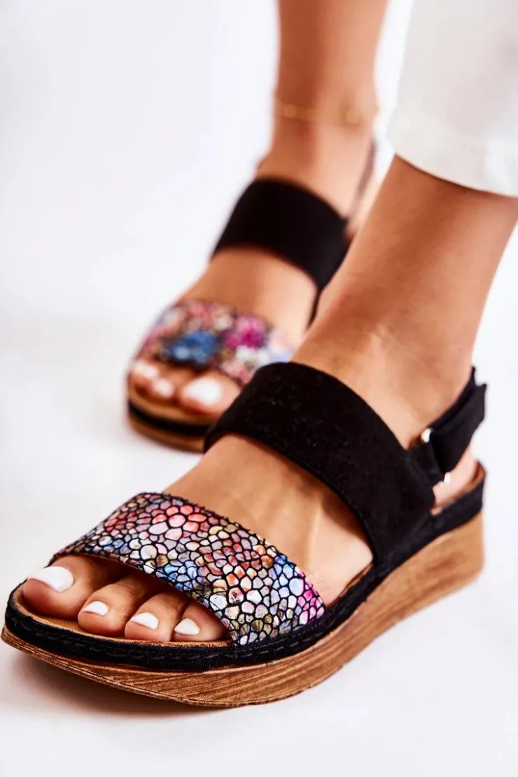 Wyjątkowe sandały na platformie od polskiej marki Maciejka. Buty zostały wykonane z wysokiej jakości naturalnego zamszu oraz naturalnej skóry. Miękka, skórzana wkładka to gwarancja wygody. Posiada delikatną perforację. Zapinane na rzep. Nosek odkryty, zaokrąglony. Paseczki świetnie przytrzymują nogę przed przesuwaniem się. Ten wspaniały model powinien idealnie sprawdzi się na co dzień. Koniecznie także sprawdź całą naszą kolekcję butów marki Maciejka. Przy wyborze rozmiaru prosimy sugerować się tabelą rozmiarów.