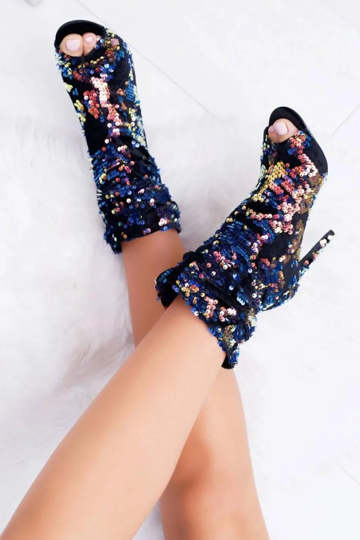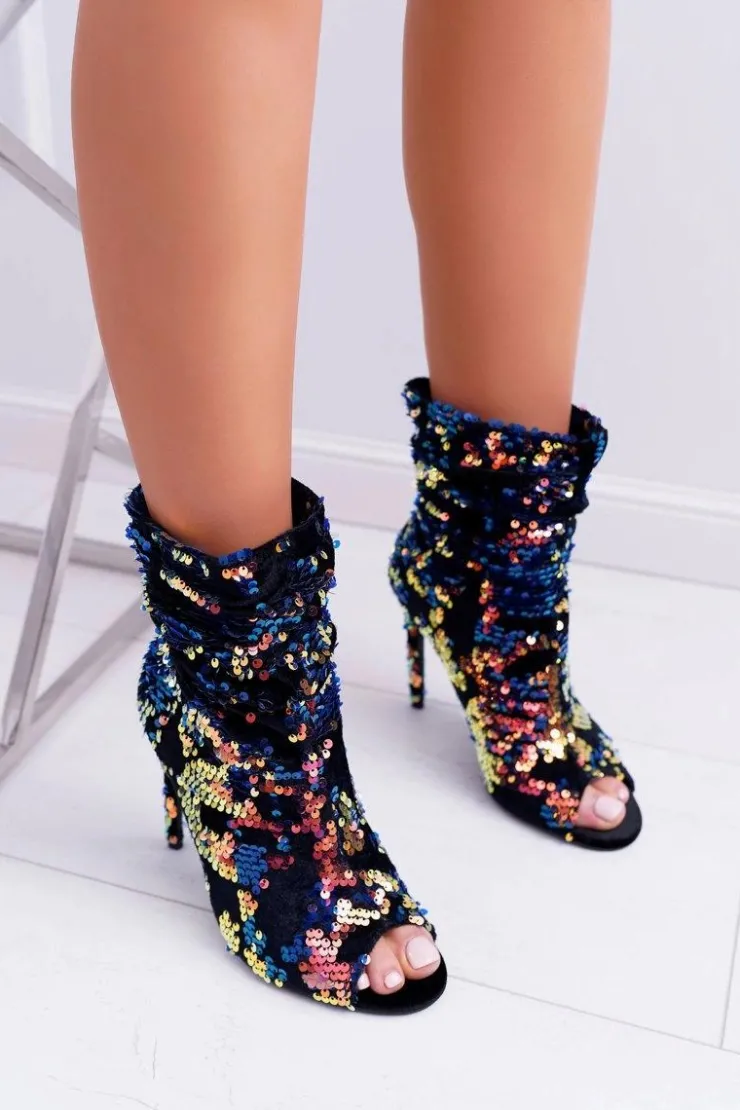 New Boto Botki Damskie Na Obcasie Eleganckie z Cekinami Opalizujące Harley