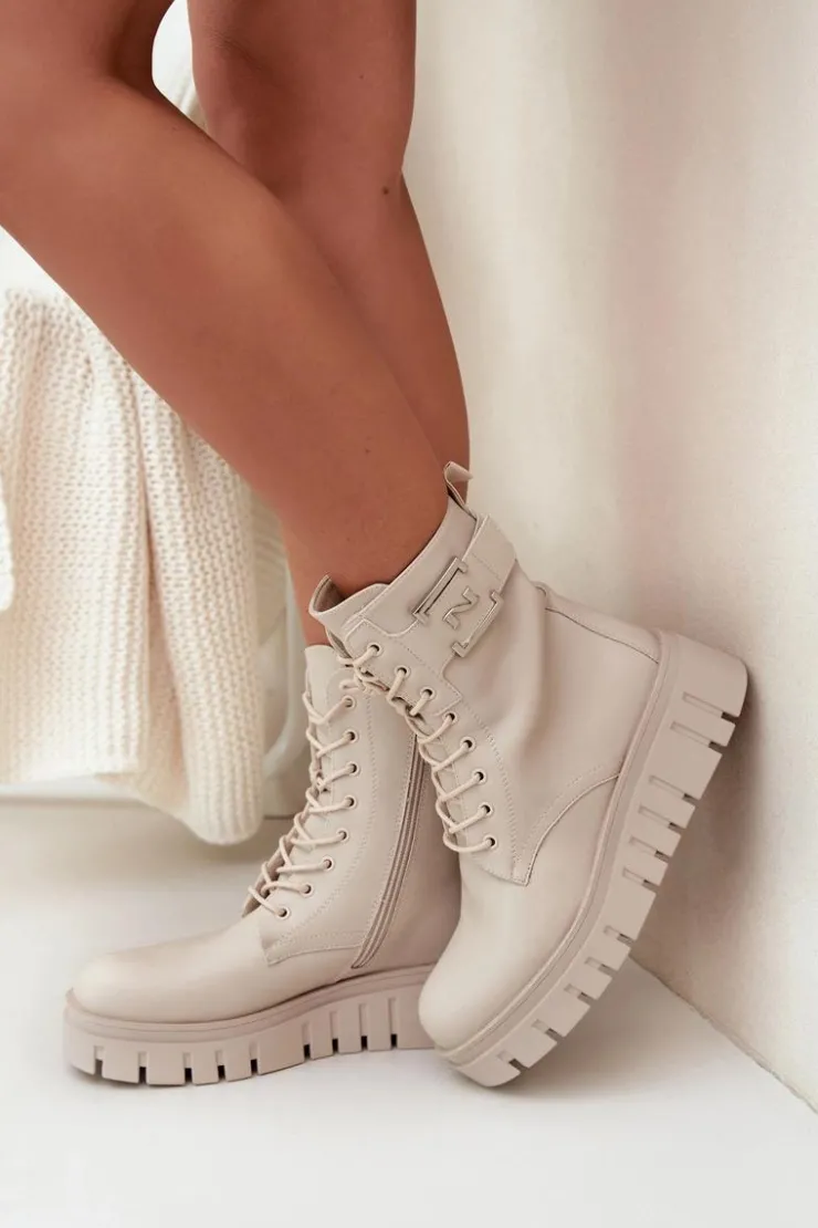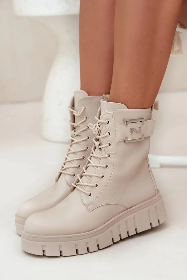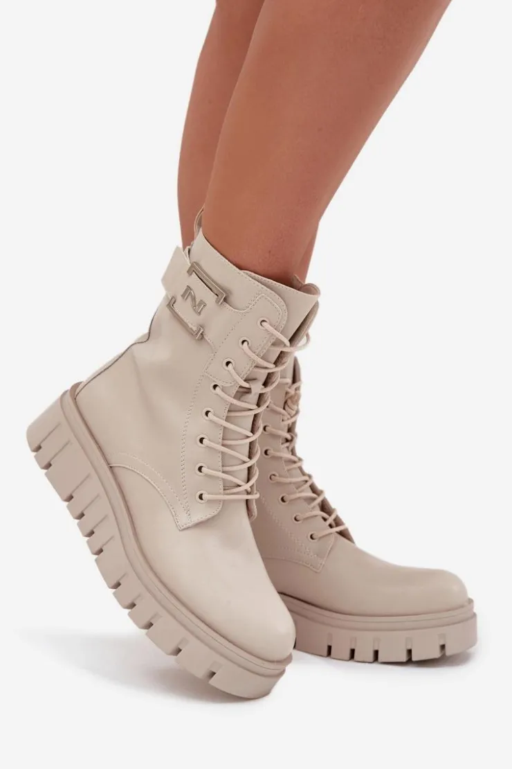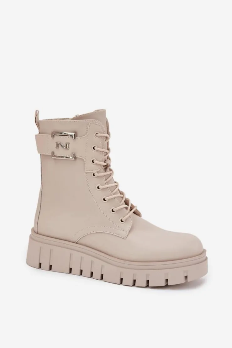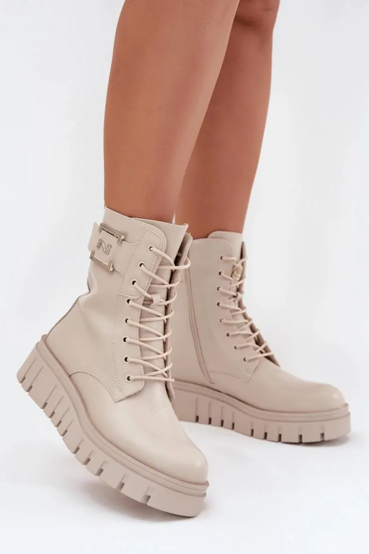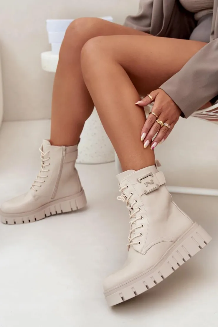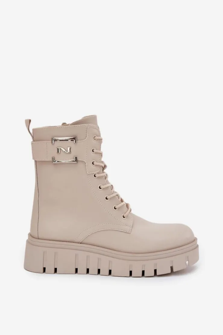 New Boto Botki Damskie Na Platformie Z Ozdobnym Detalem Ocieplane Jasnobeżowe Lyrana Beżowy
