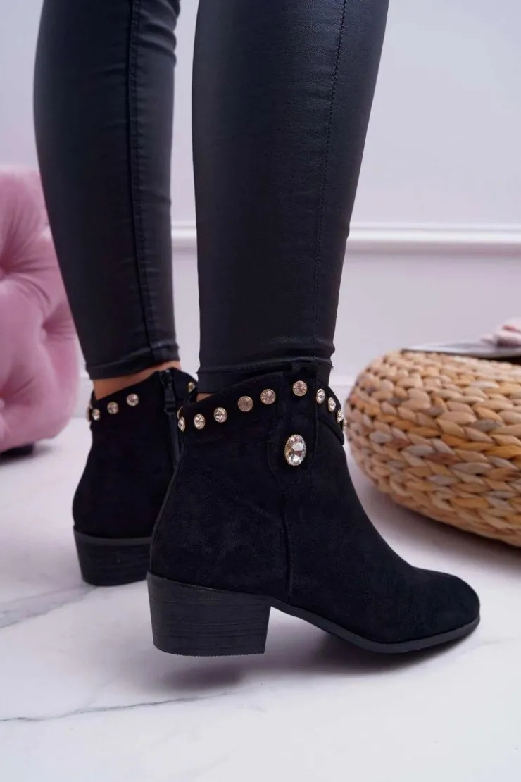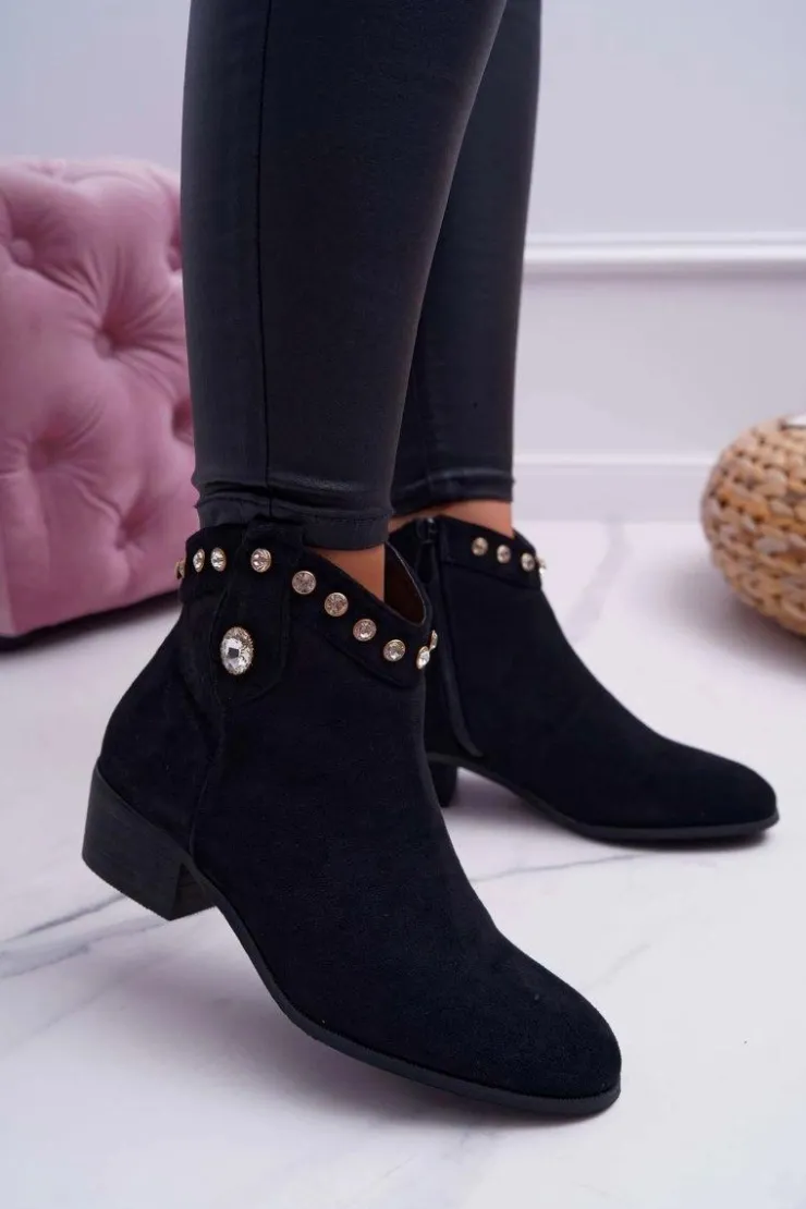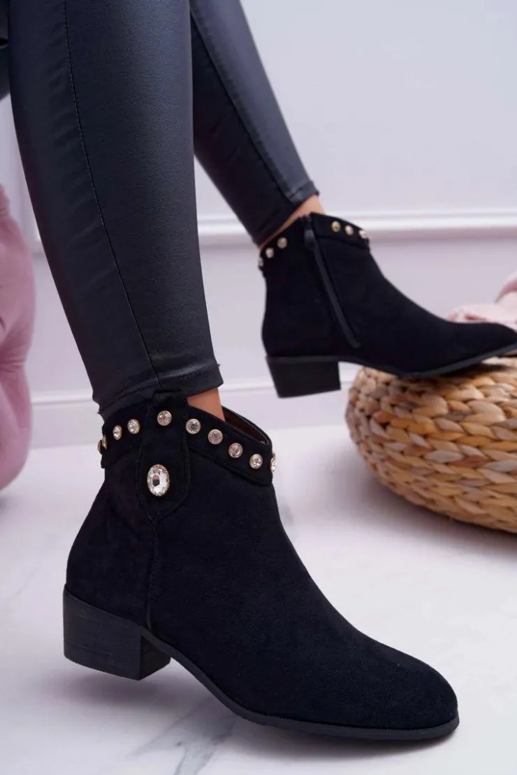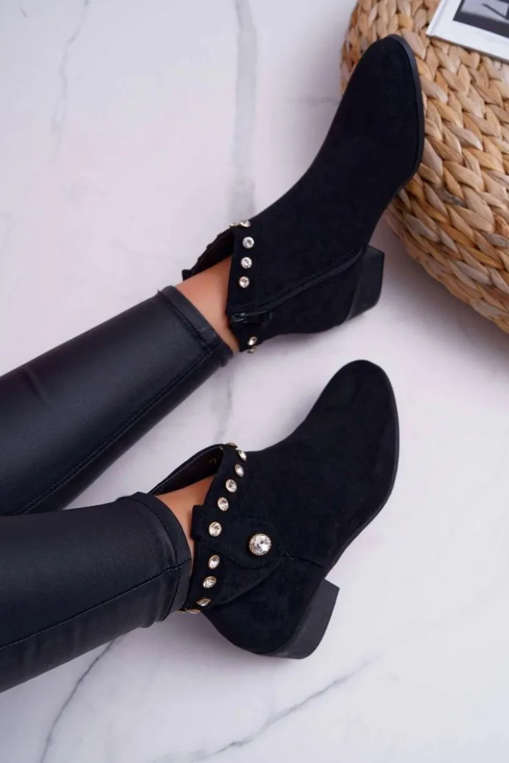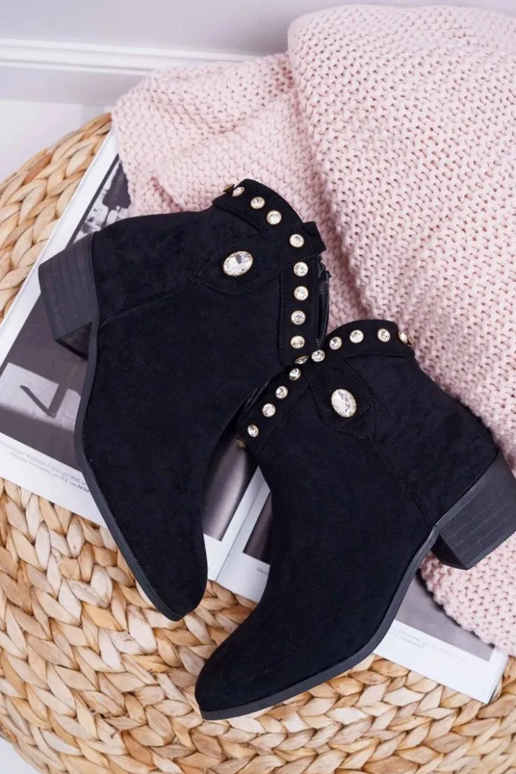 New Boto Botki Damskie Płaski Obcas Kowbojki Z Cyrkoniami Czarne Patti