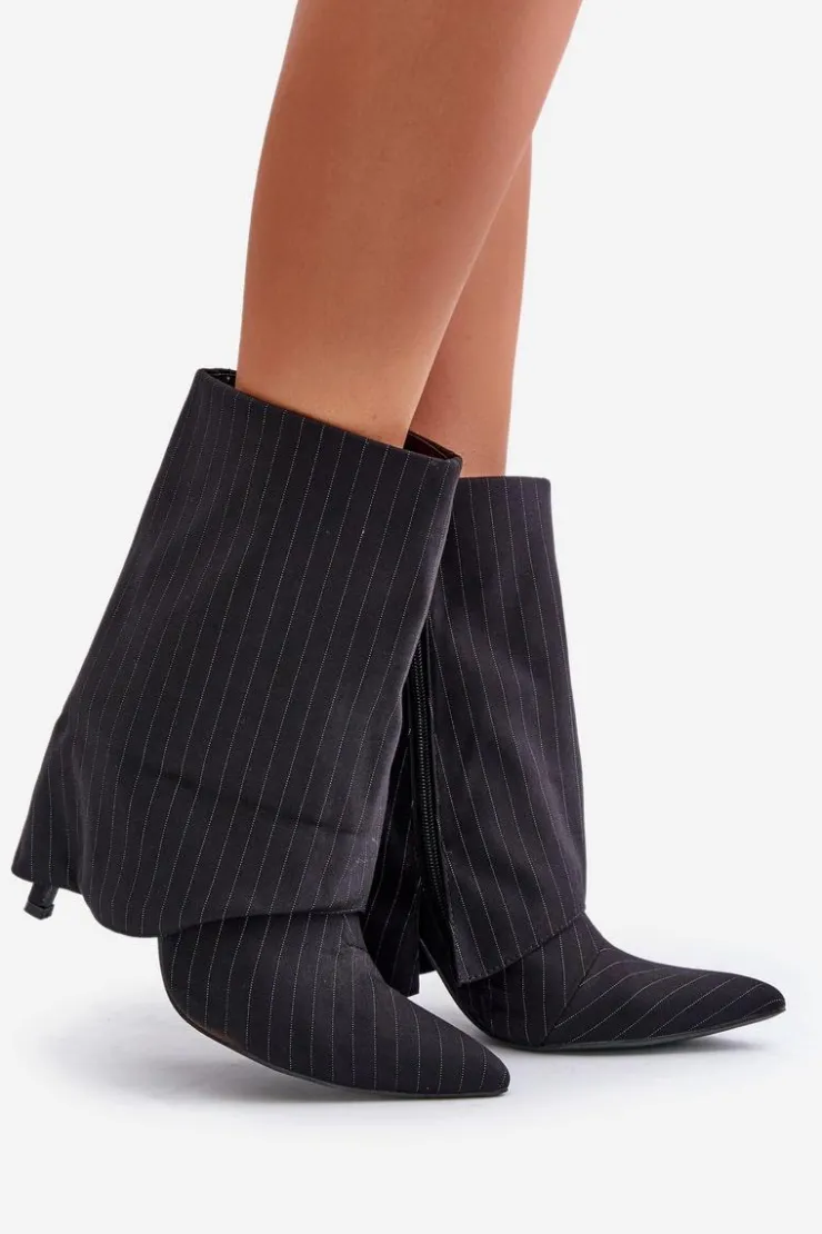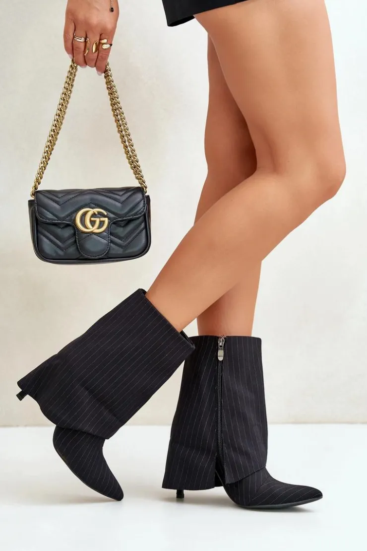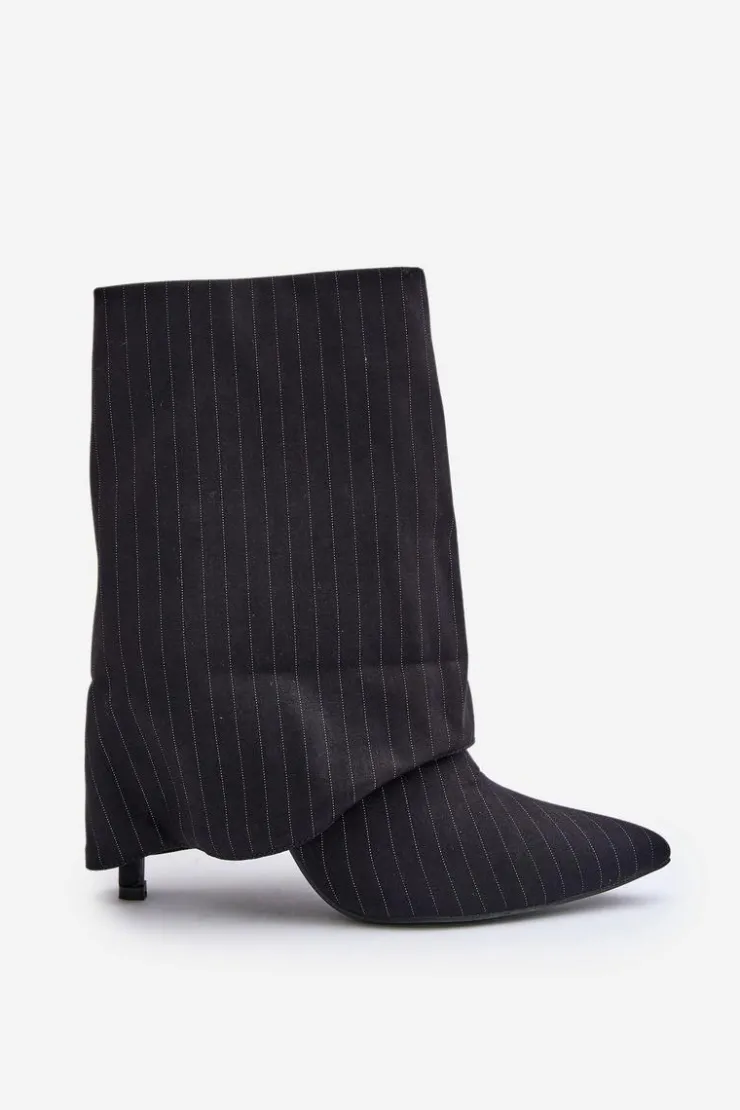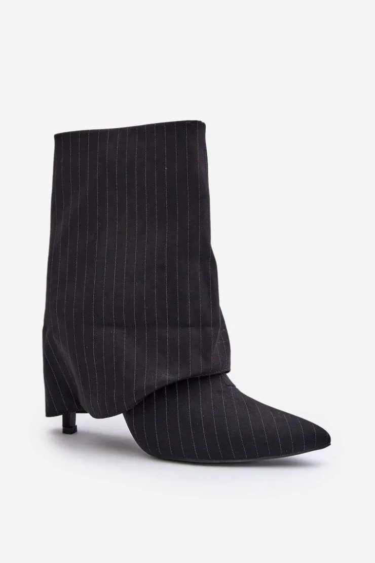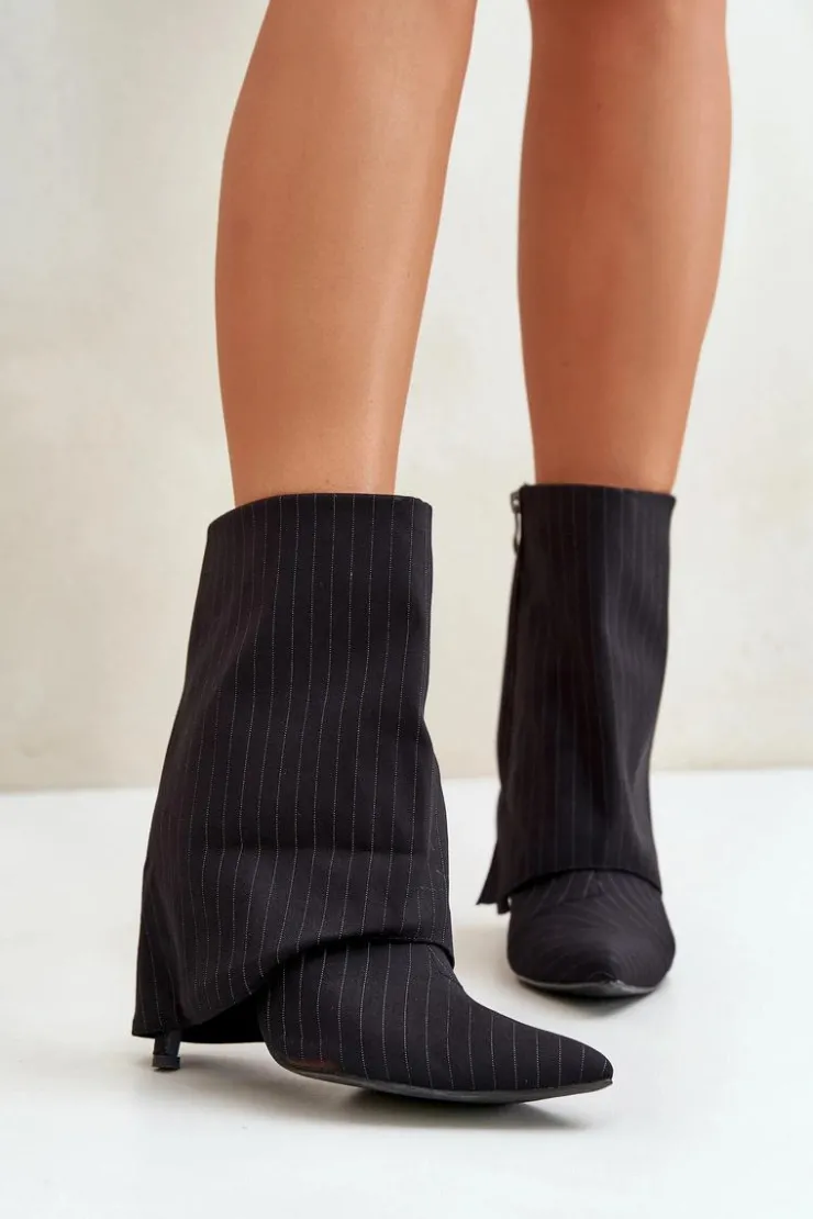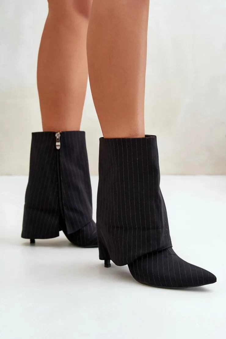 New Boto Botki Damskie W Paski Na Szpilce Z Wywiniętą Cholewką I Noskami W Szpic Czarne Naritua Czarny