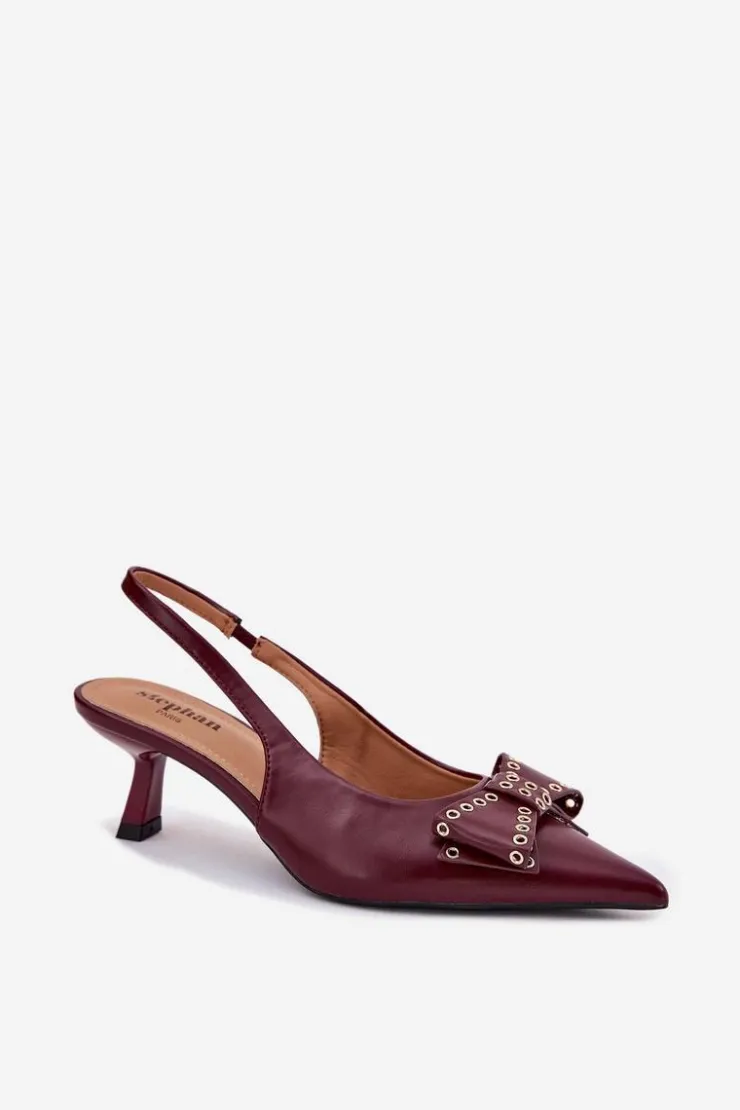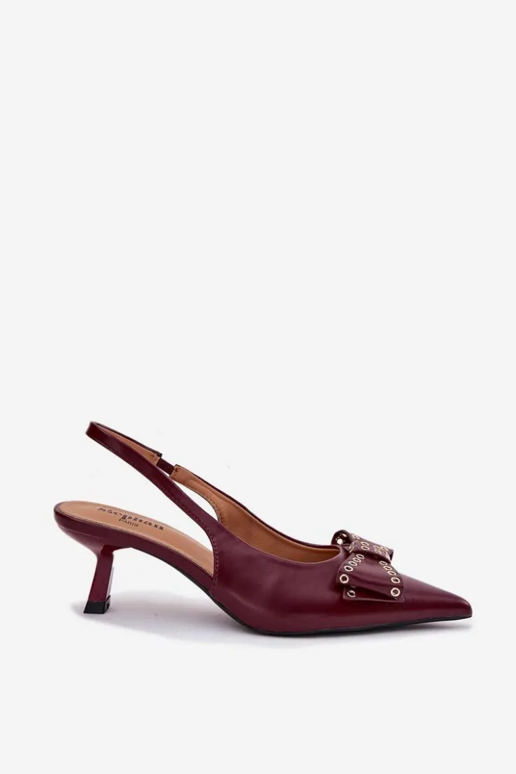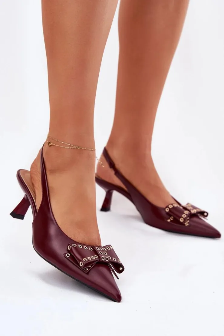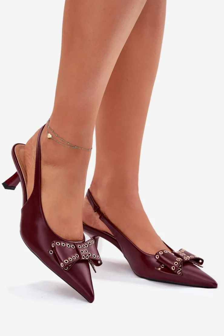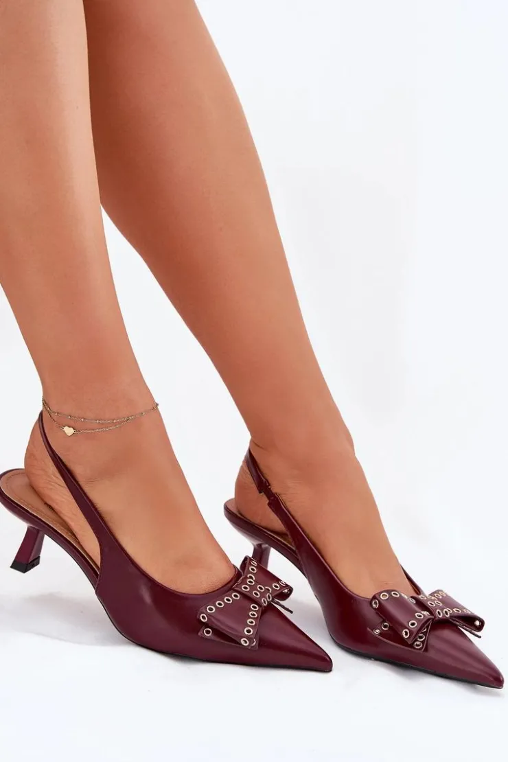 New Boto Czółenka Na Szpilce Z Kokardą Bordowe Folesca Czerwony