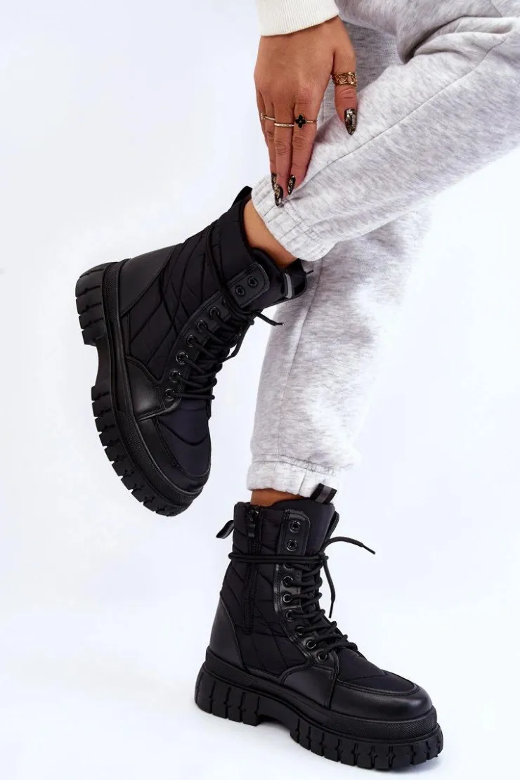 Botki Ariadna to nowość tego sezonu! Świetnie prezentują się z zimowymi stylizacjami. Cholewka jest wykonana z połączenia tkaniny oraz skóry ekologicznej. Wnętrze zostało wykończone ciepłym materiałem Przy wyborze rozmiaru prosimy sugerować się tabelą rozmiarów.