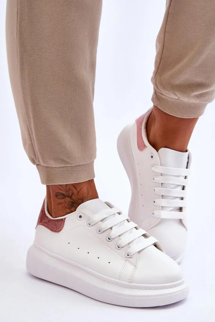 Wygodne sportowe damskie buty zostały wykonane z wysokiej jakości eko skóry z delikatną perforacją na boku cholewki. Wiązane na płaskie sznurowadła. Osadzone na masywnej platformie, która została wykonana z gumowego tworzywa. Wkładka jest wykonana z pianki i materiału. Nosek zaokrąglony. Model, który pasuje do wielu sportowych stylizacji. Koniecznie sprawdź pozostałe modele obuwia sportowego dostępnego w naszej ofercie! Przy wyborze rozmiaru prosimy kierować tabelą rozmiarów.